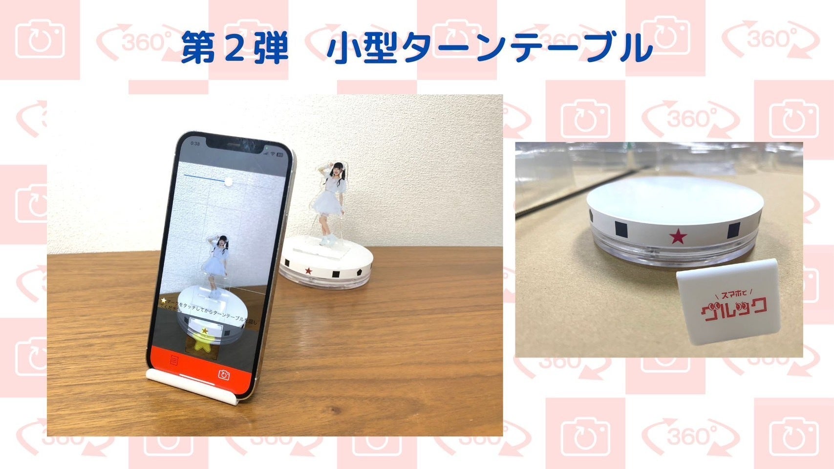 スマホでグルック 360度撮影用ターンテーブル(通常パッケージ) +【限定】スマホでグルック 360度撮影用ターンテーブル(名古屋アイドル dela バージョン /松島七葉アクリルスタンド付)