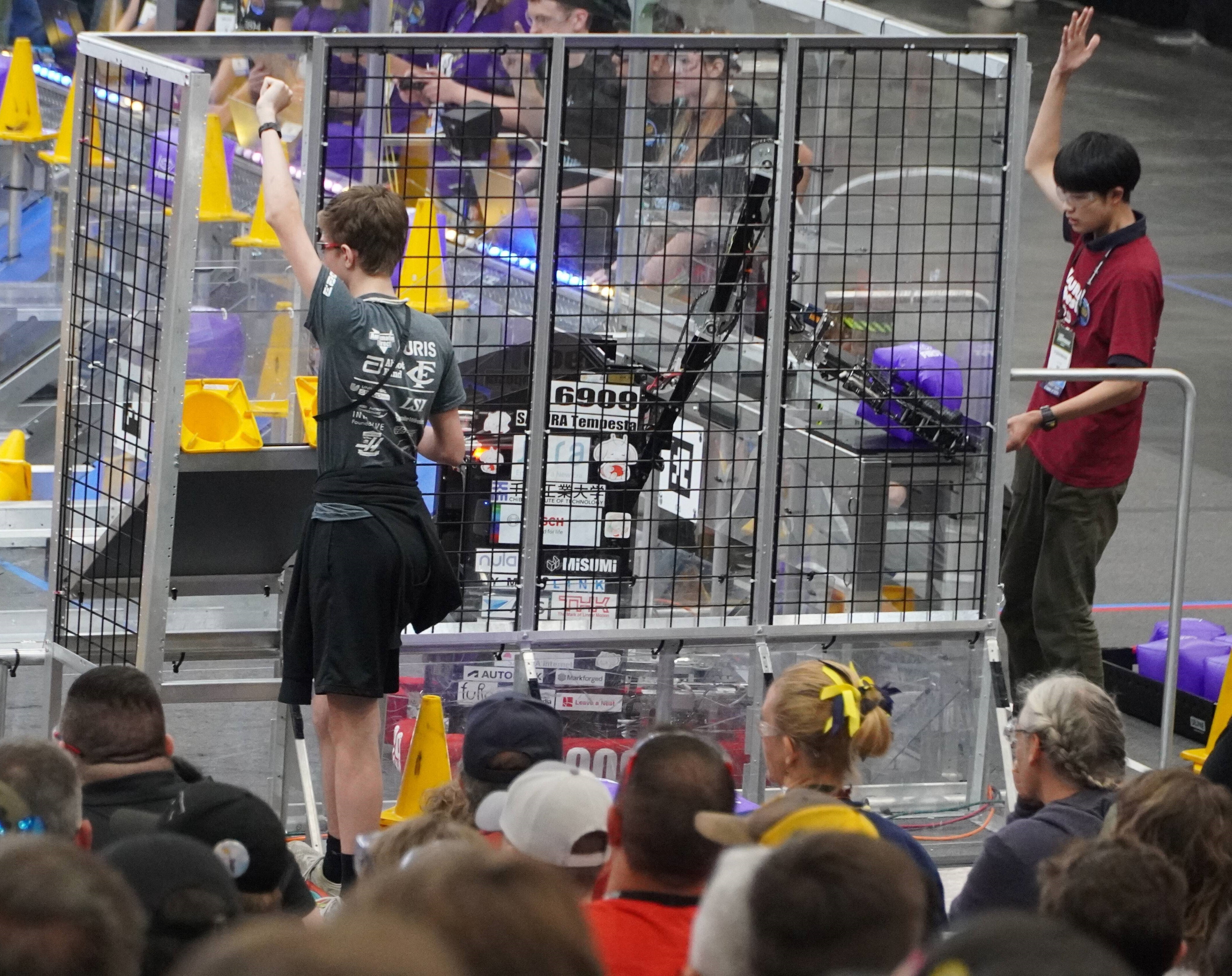 それぞれのチームメンバーは様々なチームのピットを訪れ、ロボットの仕組みやチームのアウトリーチ活動などについて情報交換をします。
