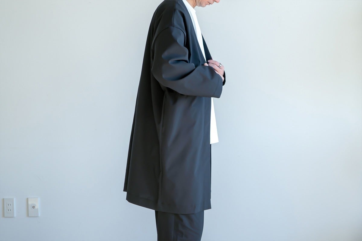 今回のMinimalist Long Jacketは、まさに羽織と同等の着丈にしています。