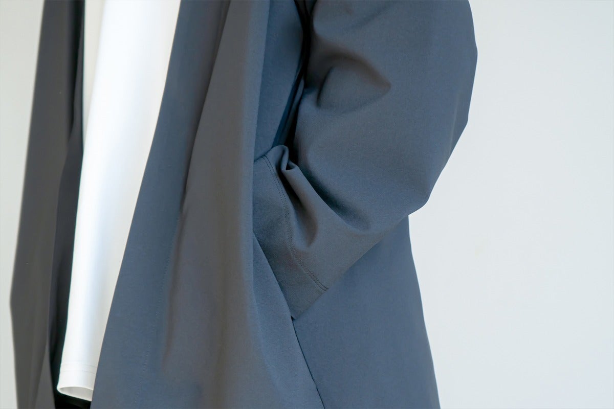 リモートワークやテレビ会議が増え、より上半身の身なりは重要性を増しています。Minimalist Long Jacketは、強力な防シワ素材のため、Tシャツに重ねるだけでワンランク上の清潔感を演出できます。また出張時や旅行の際に、適当にバッグに詰め込んでもOKです。