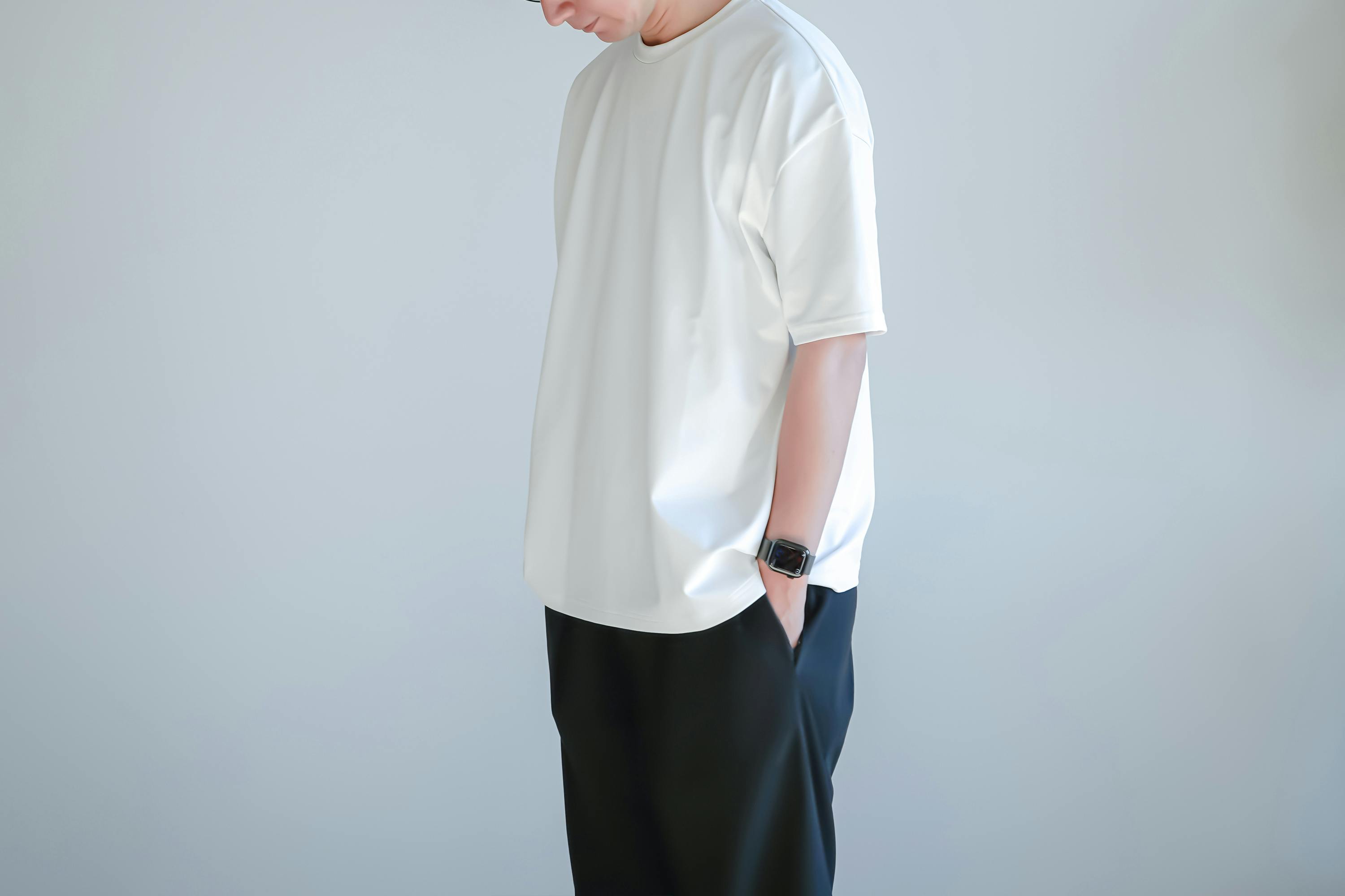シルエットはオーバーサイズのボックスシルエット。シンプルな着こなしでも、バランスの取れたコーディネートになります。夏はトップスの主役として活躍するプロダクトです。