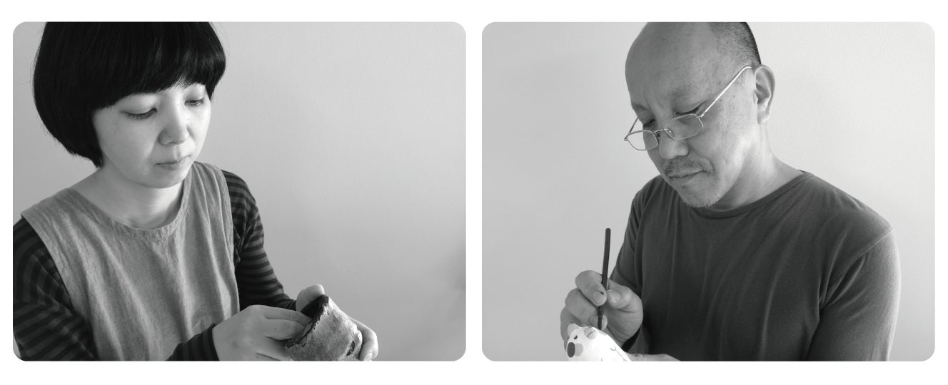 コシェルドゥは、岩手の漆や成島和紙などを素材に、漆塗りや張子などの 工芸技術を使ったバッグを作っています。張子独特の自由なカタチ、そして紙の軽さ、漆の耐水性や丈夫さを研究し、自由な発想のバッグやアクセサリーを製作しています。また、張り子の技術を学んだことをきっかけに起き上がり人形も製作しています。起き上がり人形の重りには、久慈市の小久慈焼の土粘土を使用しています。
