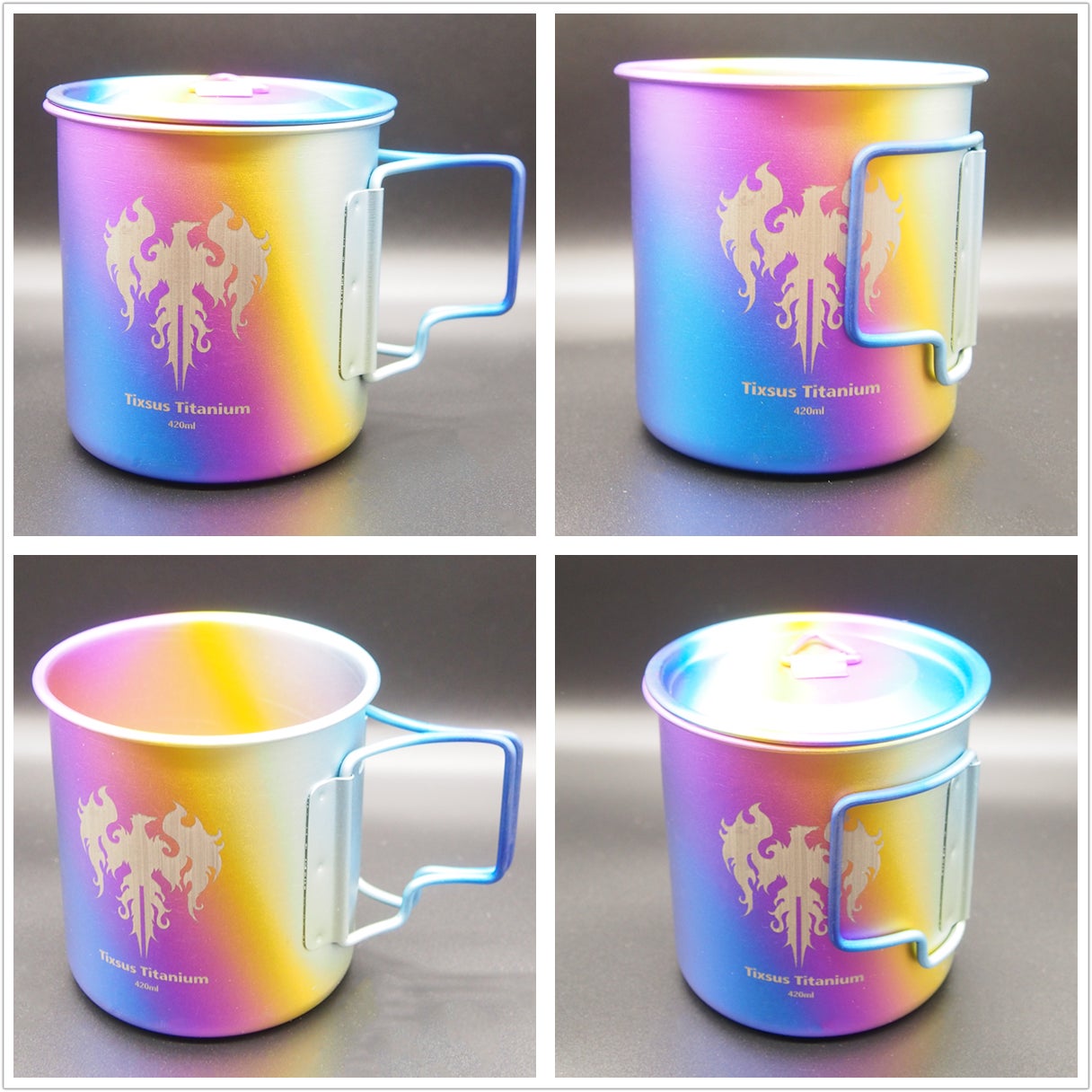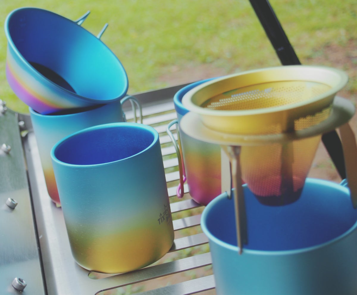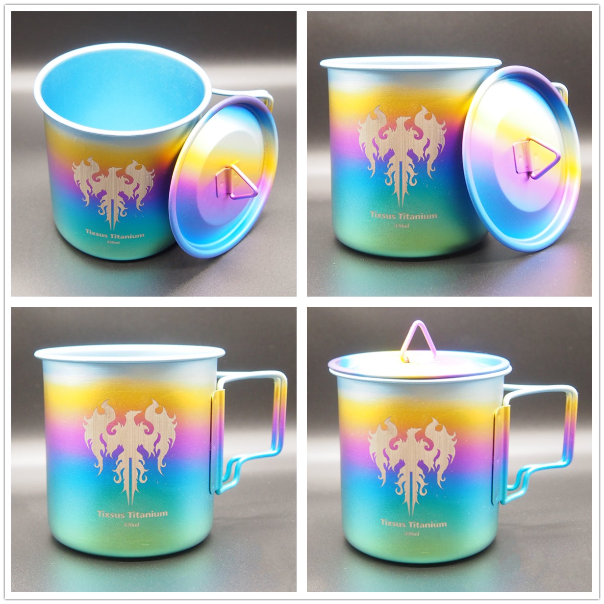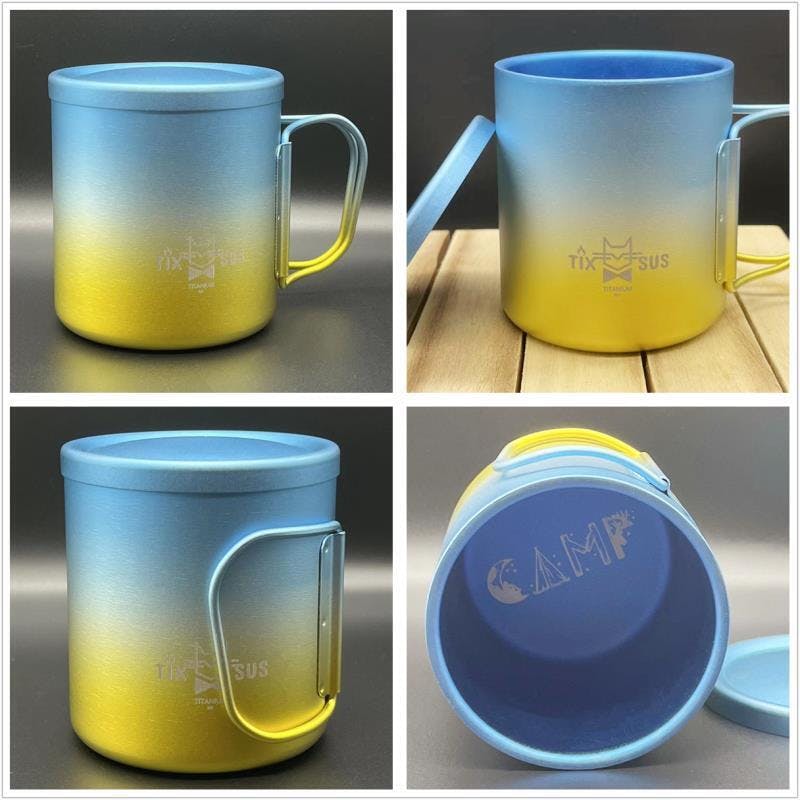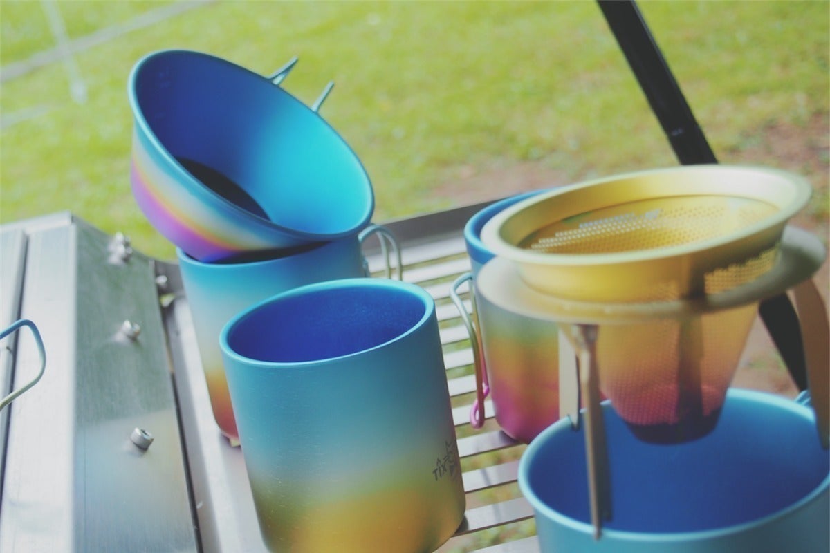 通常に使われるチタン製のマグカップ・シェラカップの単調な色より豊かな色彩を創ることを目指し、普段食卓や家族とのピクニック・キャンプのお供としても使えます。表面のグラデーションは塗装でも、メッキでも、染料でもなく、チタンの表面にグラデーションの酸化被膜を形成させ、軽くて美しいカラーチタンで製品の魅力アップ、メッキや染料や塗装と比べチタンの耐候性、耐食性質感も良好です。