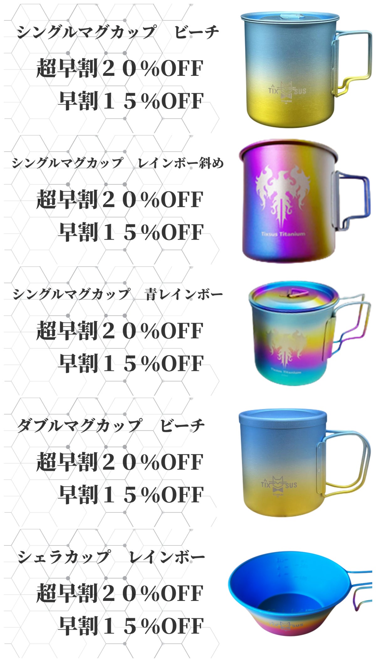 美しいグラデーションチタン製マグカップ・シェラカップ登場!