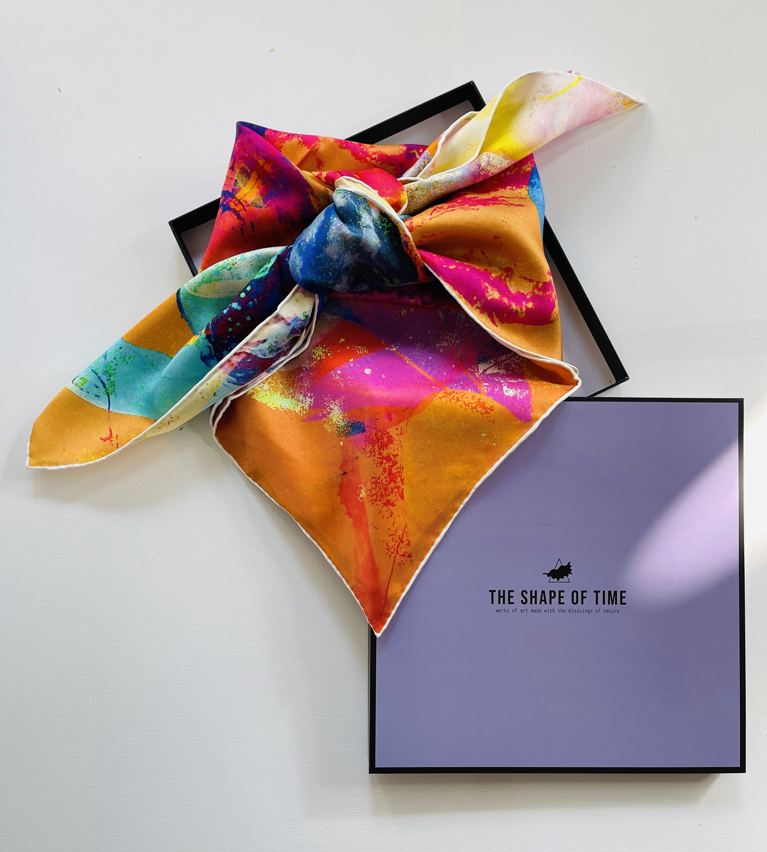 中国で数多くの賞を取った版画家の崔晶先生がもっと多く海外の方に自分の作品を知ってもらう為に立ち上げたブランドで、その版画家さんさんの作品をシルクスカーフに移し、ファッションとしても、インテリアとしても楽しめる逸品。