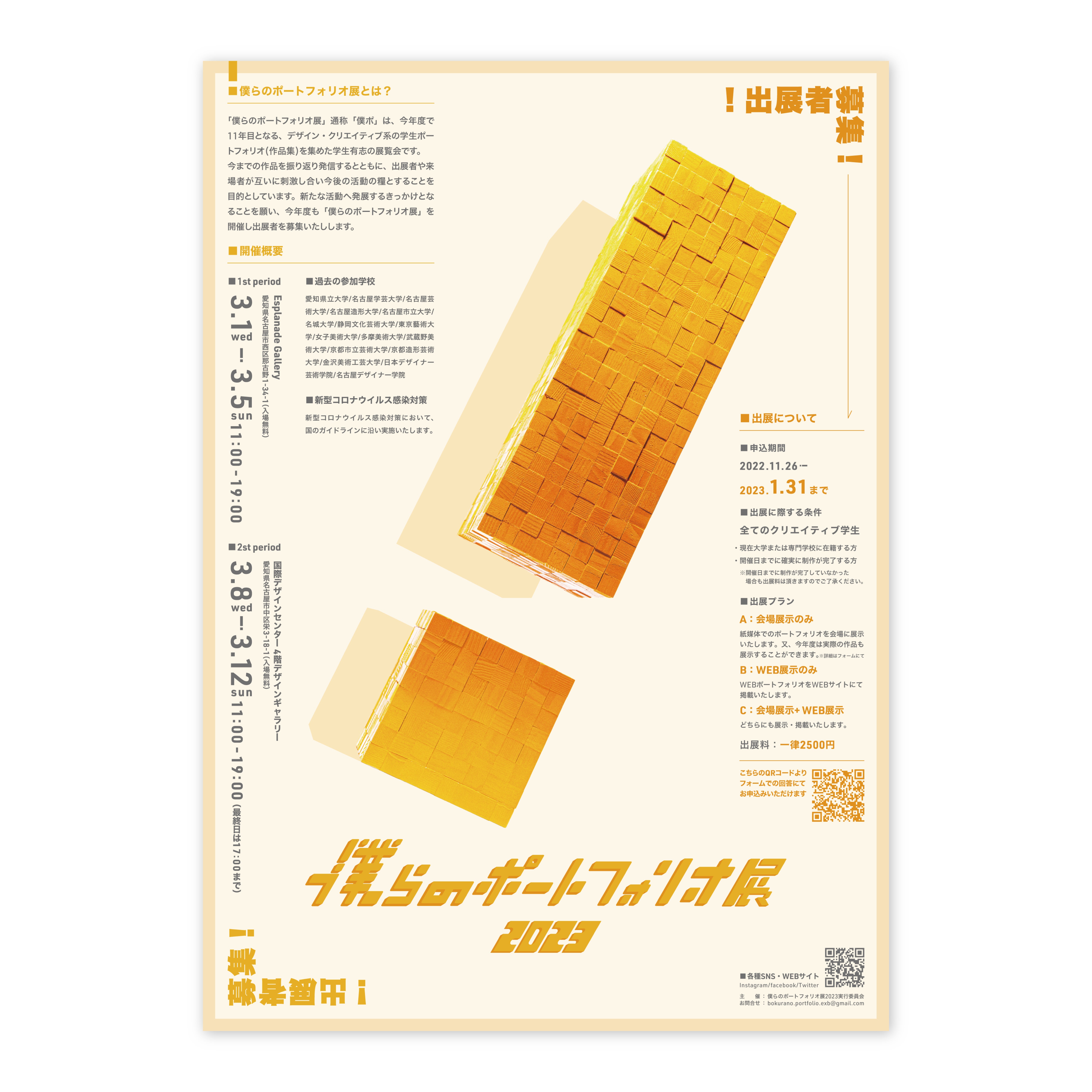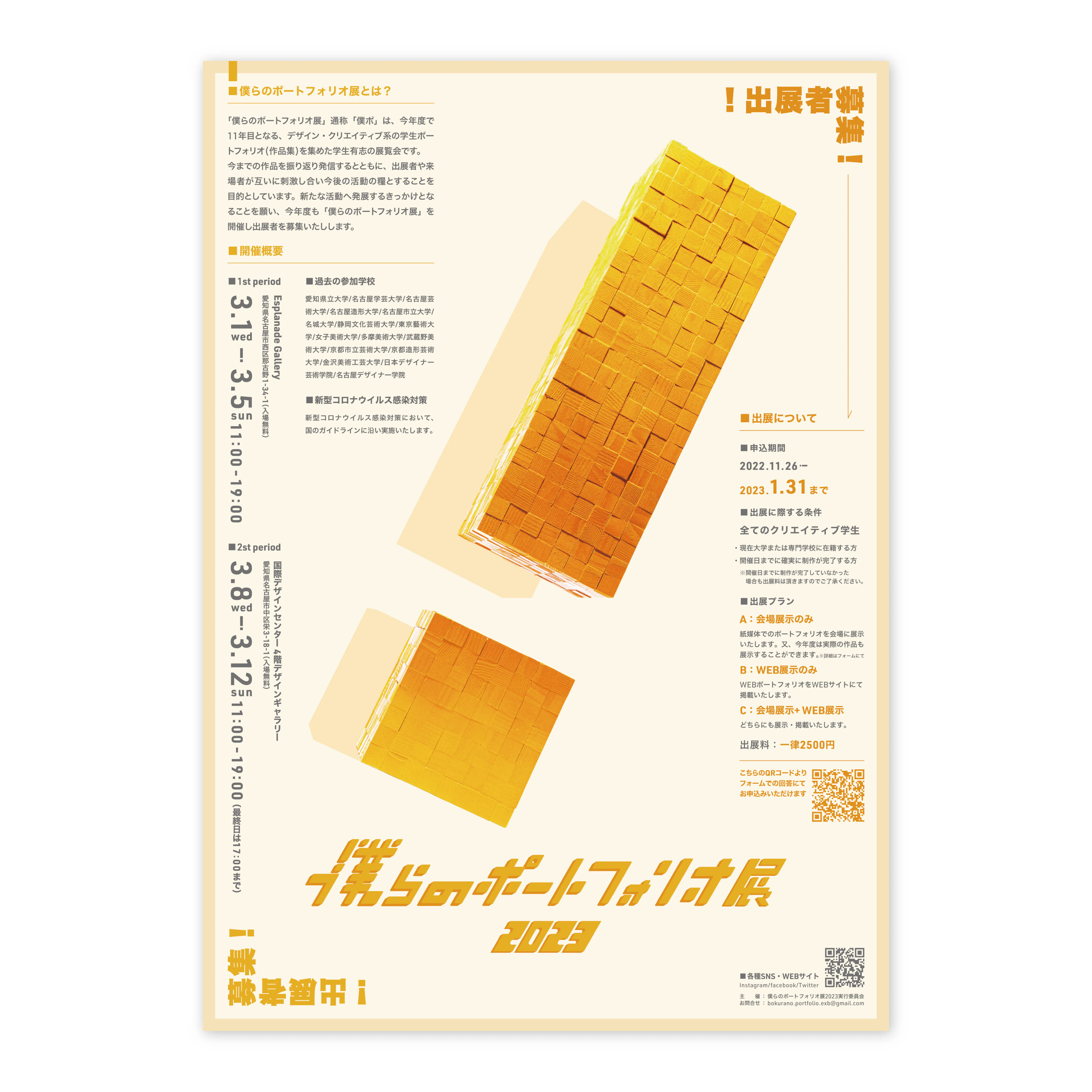 「僕らのポートフォリオ展」通称「僕ポ」はデザインクリエイティブ系の学生ポートフォリオを集めた学生主体の展覧会です。毎年東海地方にデザイン系学生が集い、企画運営を行なっています。