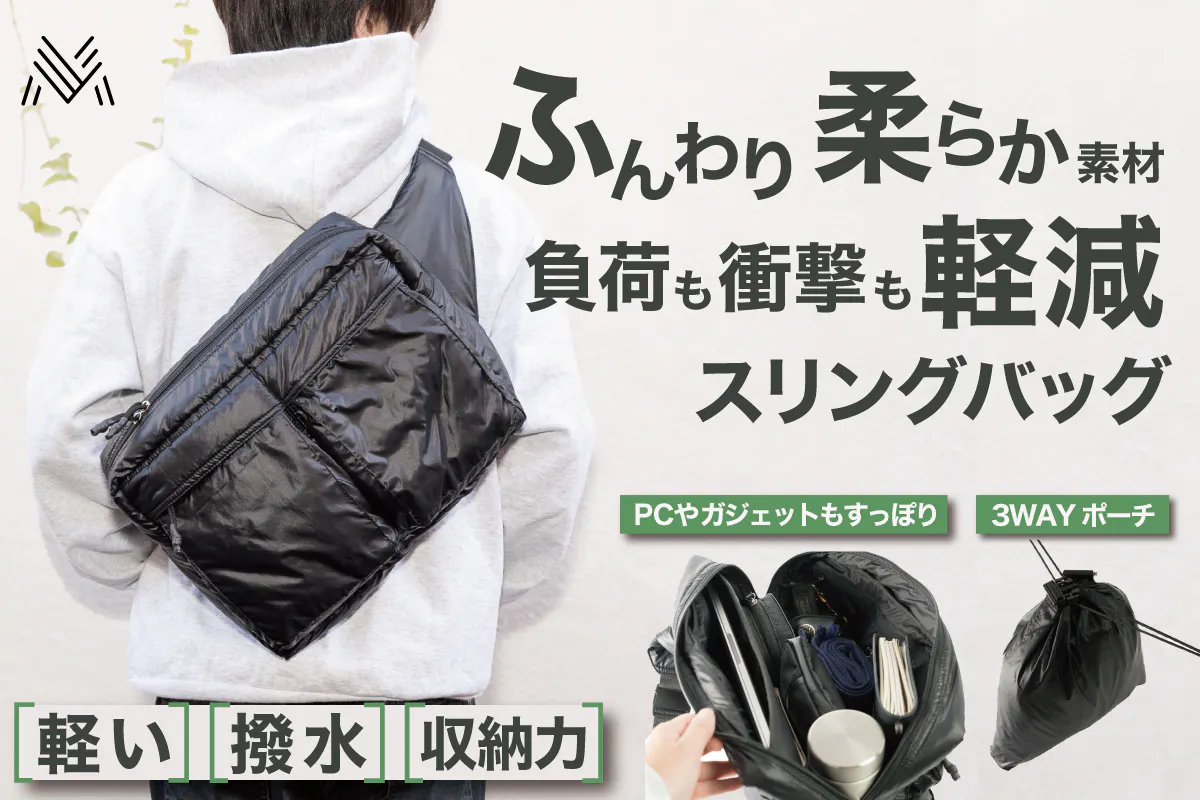 machi-ya originalsが新たに製作したのは、日常にも特別な日にも寄り添ってくれる“ちょうどいい”をカタチにした中綿素材のスリングバッグ。水や汚れに強くて、ミニマルでシンプルなデザイン。それでいてポケット類やPCやガジェット類も入る十分な収納スペースを備えた小回りの利く一品です。