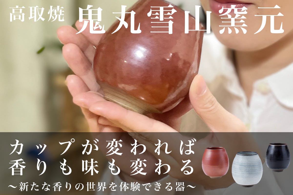 現在は、二代目鬼丸碧山が引き継ぎ日本だけでなく、フランス、ドイツなどの海外でも受け継がれた技とともに魅力を伝えています。伝統を引き継ぎ伝えることはもちろん、「香るカップ」などの新しい商品開発も鬼丸雪山窯元ならではの活動です。「香るカップ」は、飲み口を小さくすることで香りがカップ内に集中し、口に近づけると鼻までカップ内におさまることから、香りと味を同時に深く楽しめるものになっています。飲み口は、わずか約0.5mmと薄いつくりでありながら、持ち手は厚く誰の手にもフィットする感覚を兼ね備えた職人ならではの作品です。