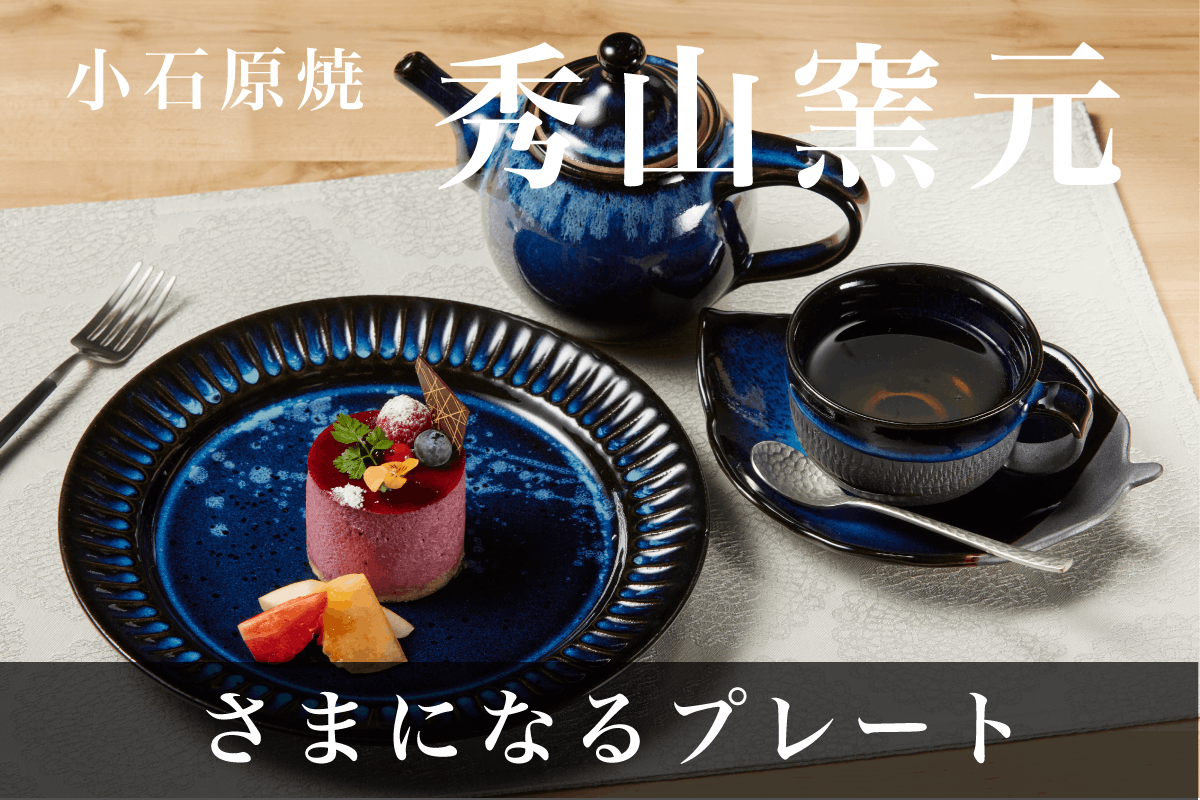 料理をひき立たせるようにつくられた深い青や淡い青は、大切な方とのお食事をより印象的に彩りを与えます。この藍色は、深みを出すために、焼く温度を通常の陶器より高めに長くじっくり焼くことでつくられる秀山窯ならではの方法です。秀山窯が魅せる美しい青の景色をお楽しみください。