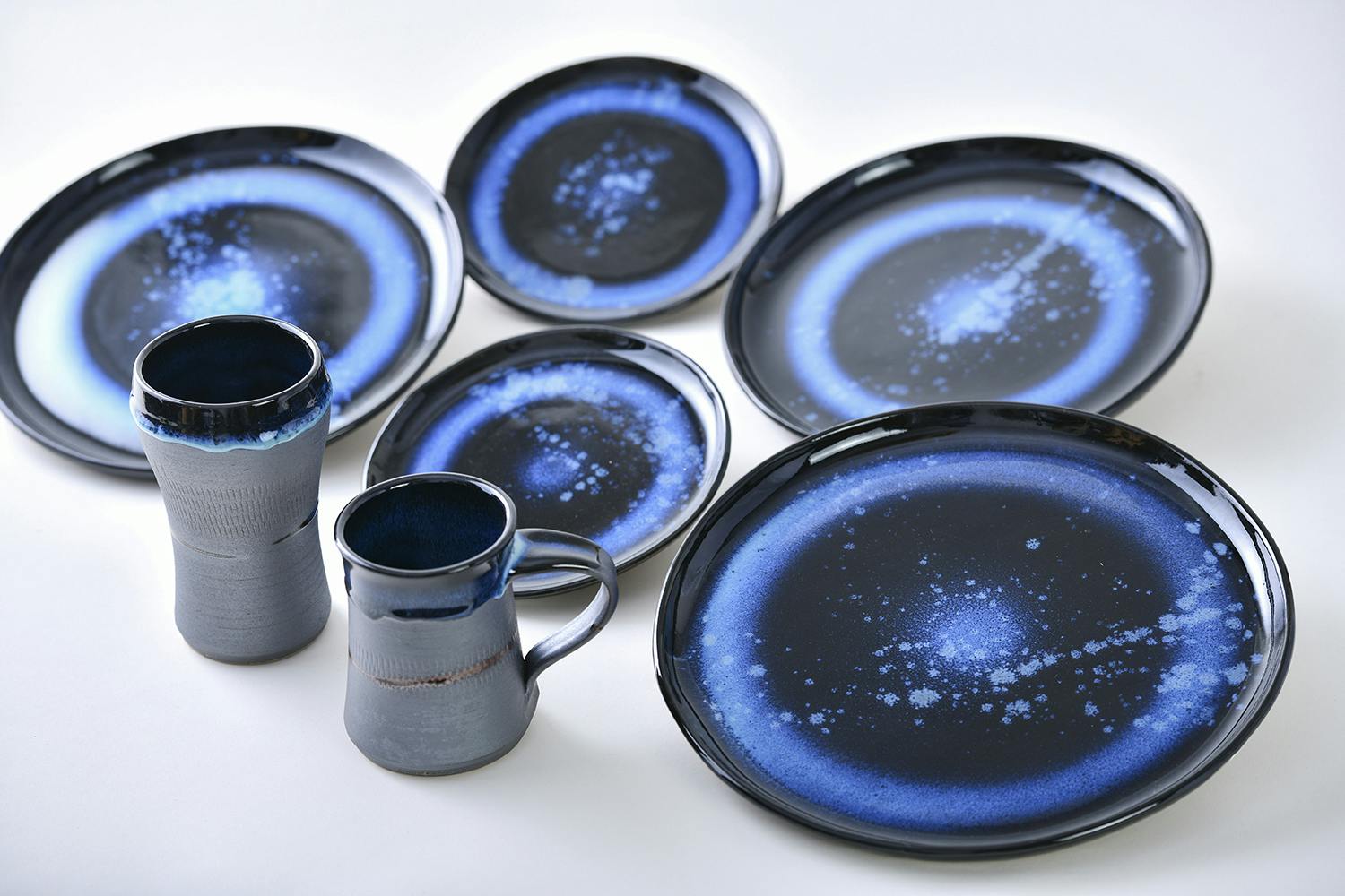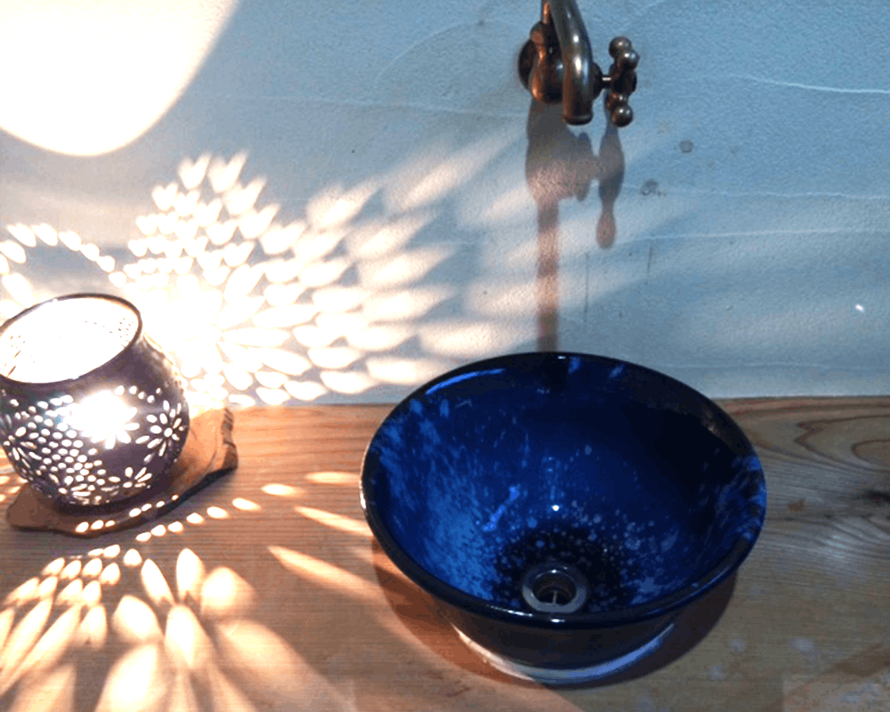 作品のラインナップも豊富であり、コーヒーカップやフラット皿などの定番品からウェルカムボード、ランプシェード、洗面ボールなどの一風変わった作品も特徴的です。惹き込まれる美しい藍色の陶器は、海鮮居酒屋、イタリア料理店、やき鳥屋などの幅広い飲食店で親しまれており、料理とともに作品が楽しめるようになっています。