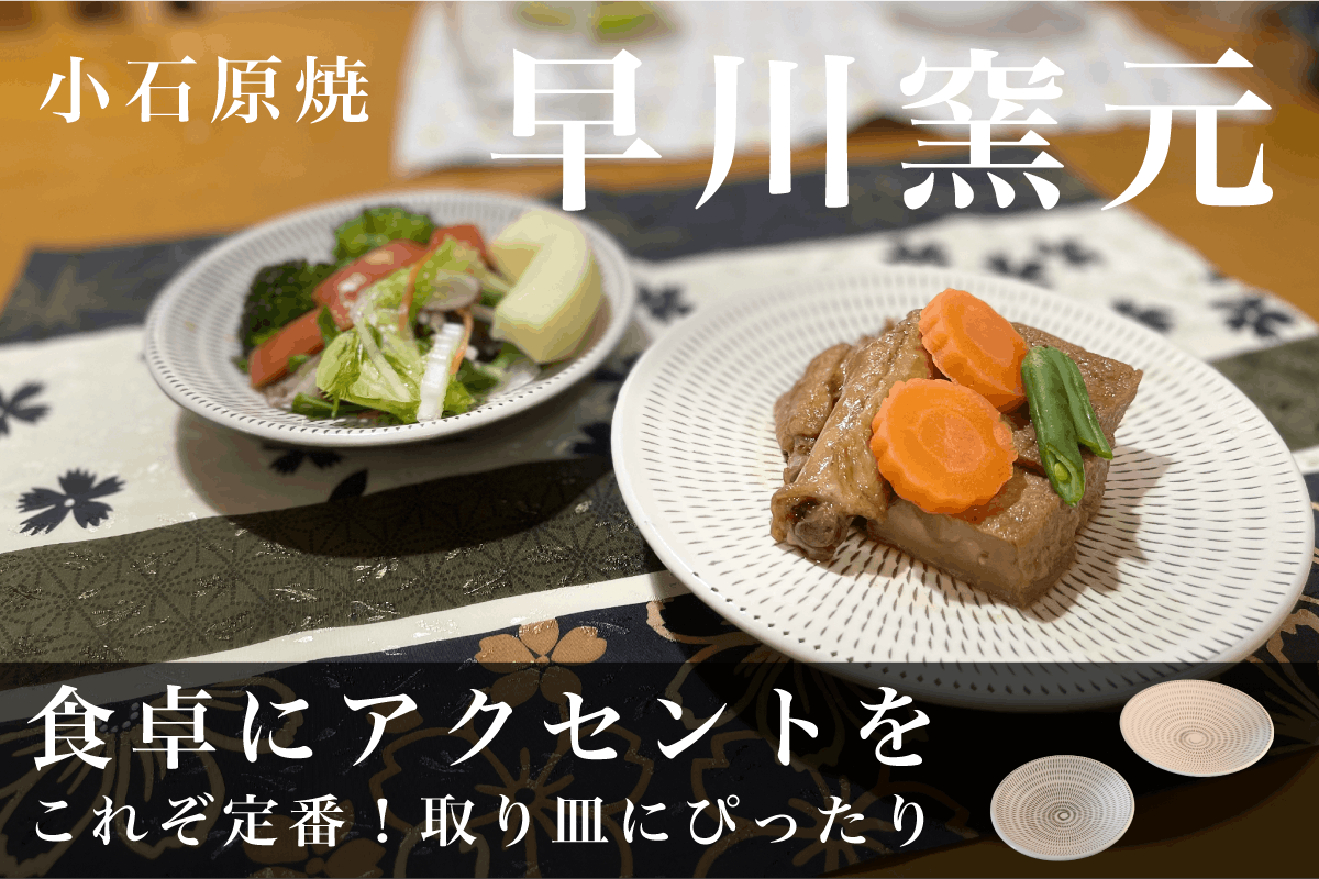 早川窯元は、30年以上も愛されている作品ココットを生み出した窯元です。ココットとは、小型の耐熱容器を意味します。早川窯元では、このココットが長く親しまれており、卵を入れてレンジでチンするだけで目玉焼きがつくれるという優れものです。デザインは白を基調としたモダンでやわらかい作品が多く、食卓に優しく温かい雰囲気をもたらしてくれます。