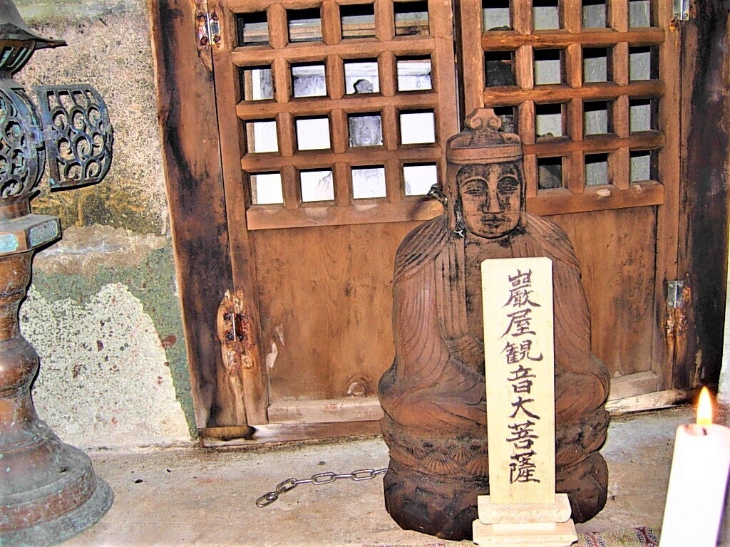 今はレプリカですが、奥座に円空作の観音様、そしてその格子戸の前には先代社長が彫り上げ奉納した観音像が置かれています。