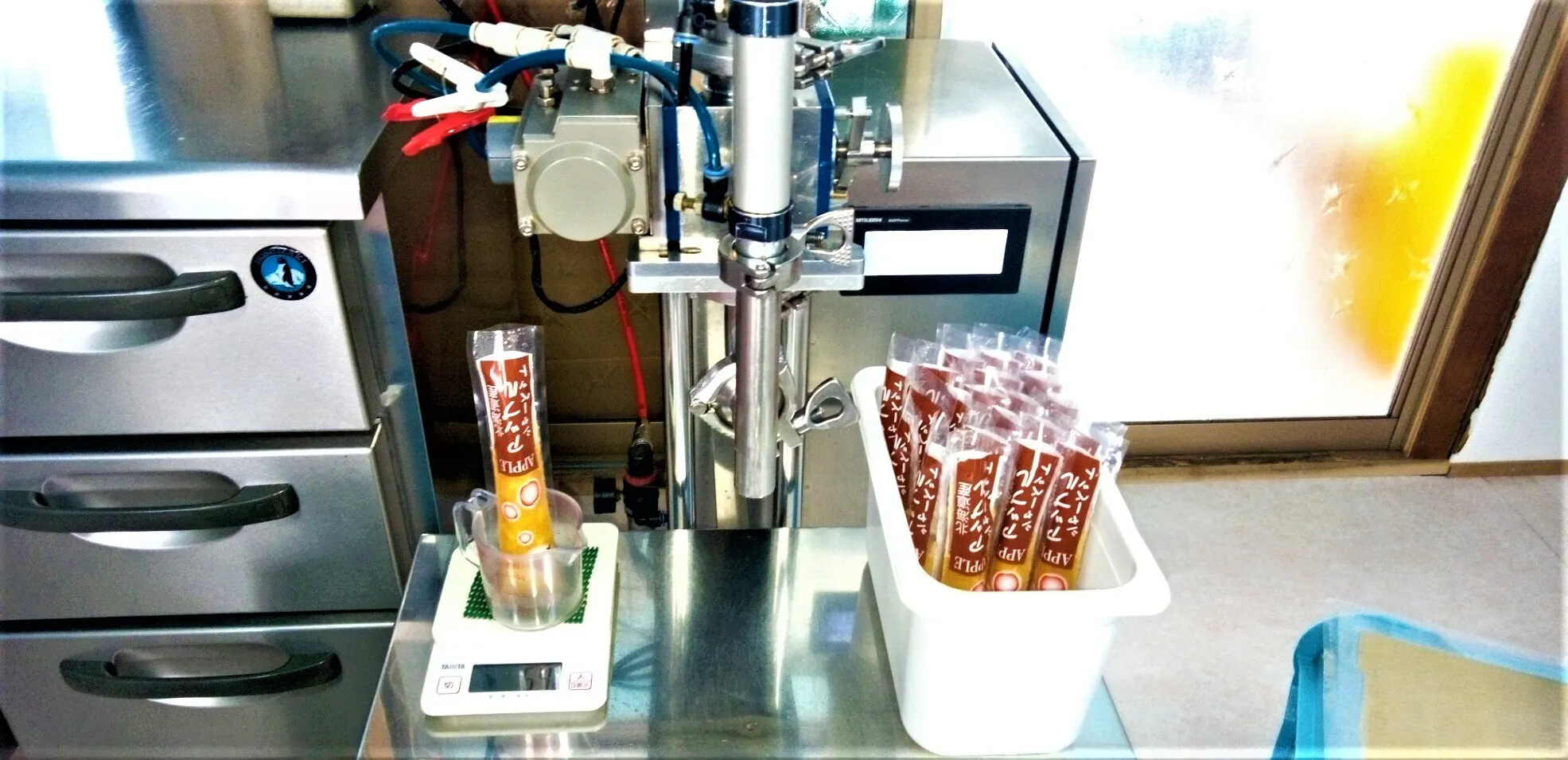 アップルシャーベット充填作業中