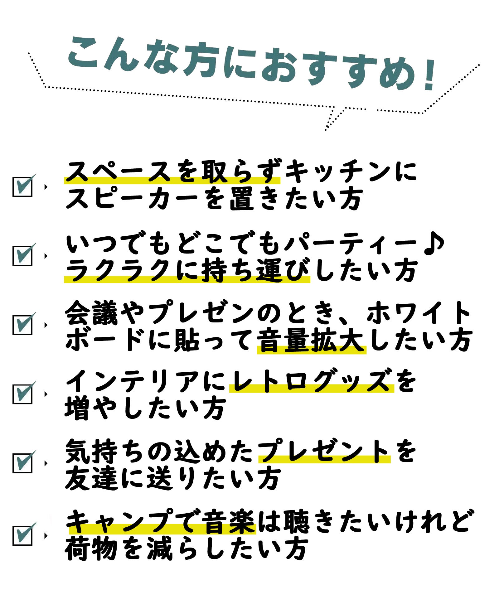 2023/11/01 16:0510月26日より、新プロジェクトが公開となりました。クリスマスプレゼントにはいかがでしょうか。お子様から大人まで幅広い年齢層に喜ばれ、この可愛らしいスピーカーで心温まる音楽と楽しい瞬間を楽しみましょう。詳しくはこちら:https://camp-fire.jp/projects/view/714751CAMPFIREにて最大22%OFF!!是非、支援の程宜しくお願い致します。 もっと見る商品発送に関して