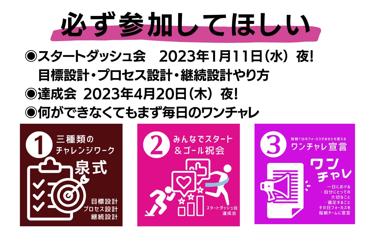 今回は、これらの100チャレプログラムを構築、仕組み化し広げていくためのチャレンジです。