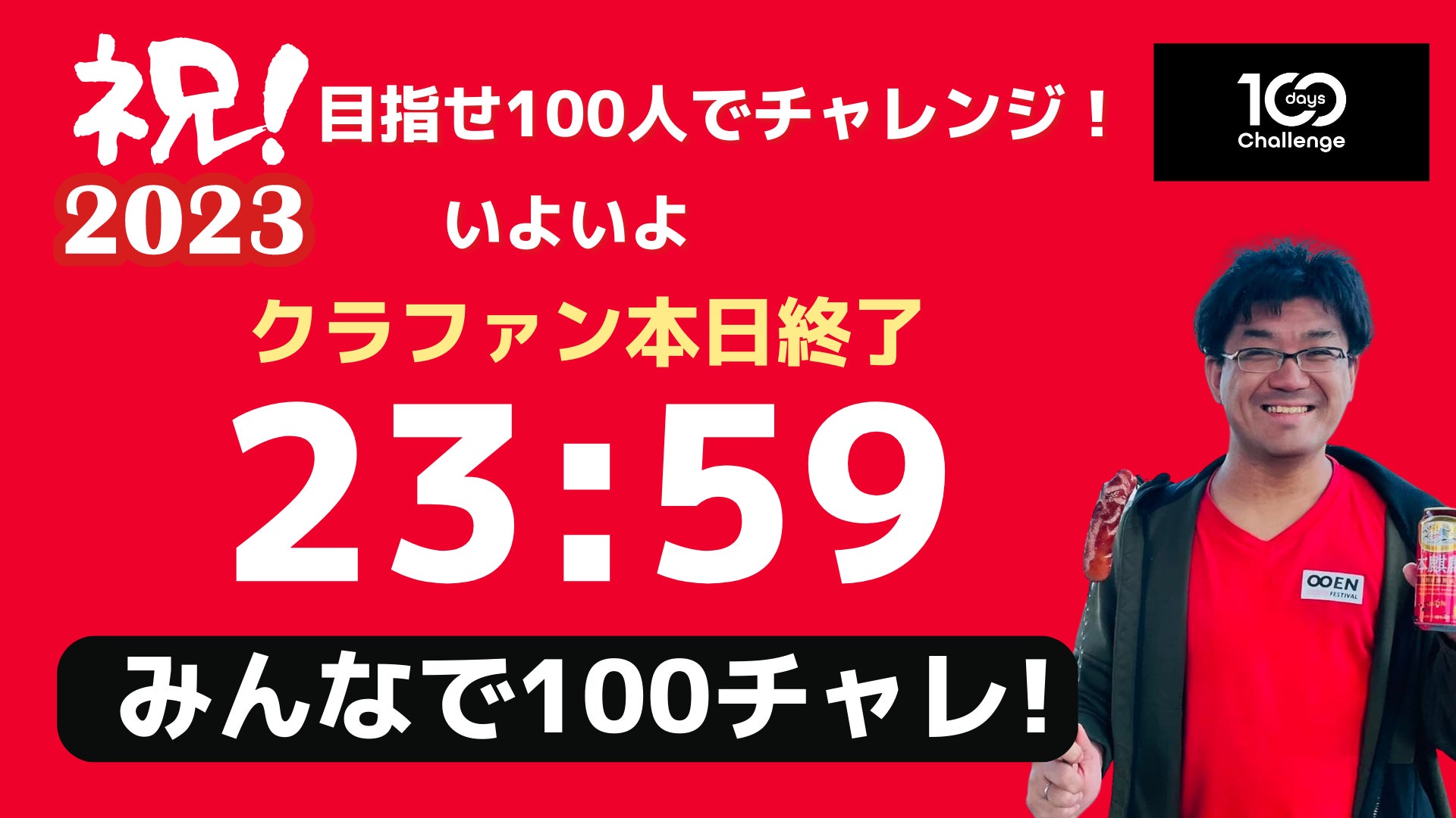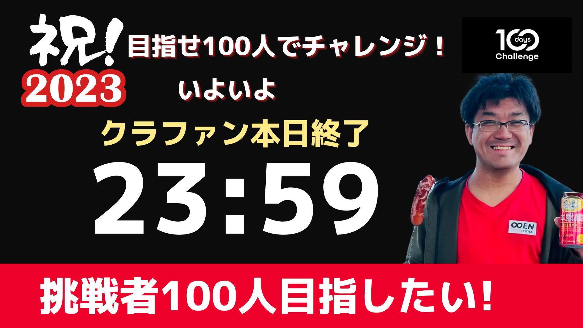 2023/01/03 13:19祝!!おかげさまで支援者数が100人を突破!!!多くの応援、支援ありがとうございます!!!ラスト10時間!「100人の挑戦者」を集めることを目指しております!!ラスト20人ほどです!!!応援されるために応援する!そんな下心はダメ!!!そんなん!!嘘です!!!特に今回のクラファンのチャレンジコースを選択いただいた方は、あなたのチャレンジ!全力で応援していきます!なぜならあなたのチャレンジを応援することが、私の今年のチャレンジなので、全力でエコ贔屓していきます!そして何より、挑戦できる最強の環境と仲間が100人以上もうすでに待ってます!!下心満載で参戦ください!あなたの挑戦が加速すること。それって社会にとってもいいことだから。自信持って応援されてください!!やったりましょう!!一緒に挑戦していければ嬉しいですし、一緒に挑戦しよう!応援しよう!と呼びかけてもらえたら嬉しいです!!!最後の最後までやり切ります!!!どうぞよろしくお願いします!! もっと見る