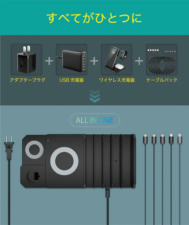 【 TERMINALIA 】はアダプタープラグ、USB充電器、ワイヤレス充電器、ケーブルなど、これまでバラバラになっていた機能をひとつに集約した、オールインワン充電ステーションです。
