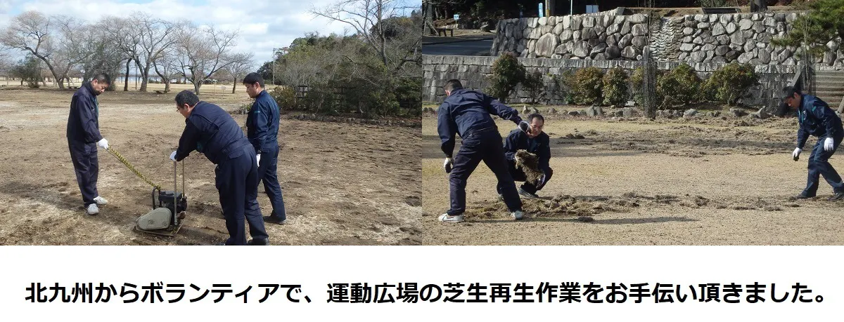 芝生広場、運動広場の整地作業