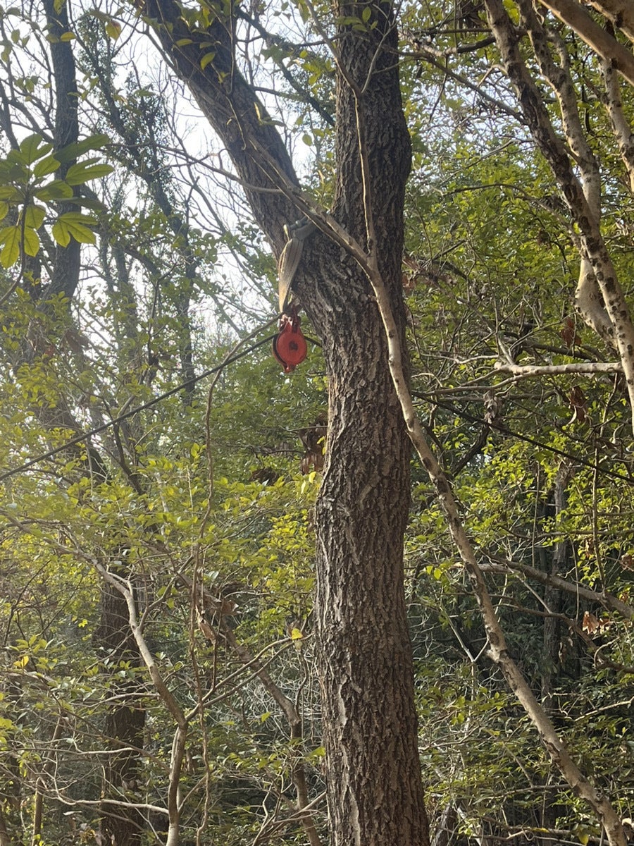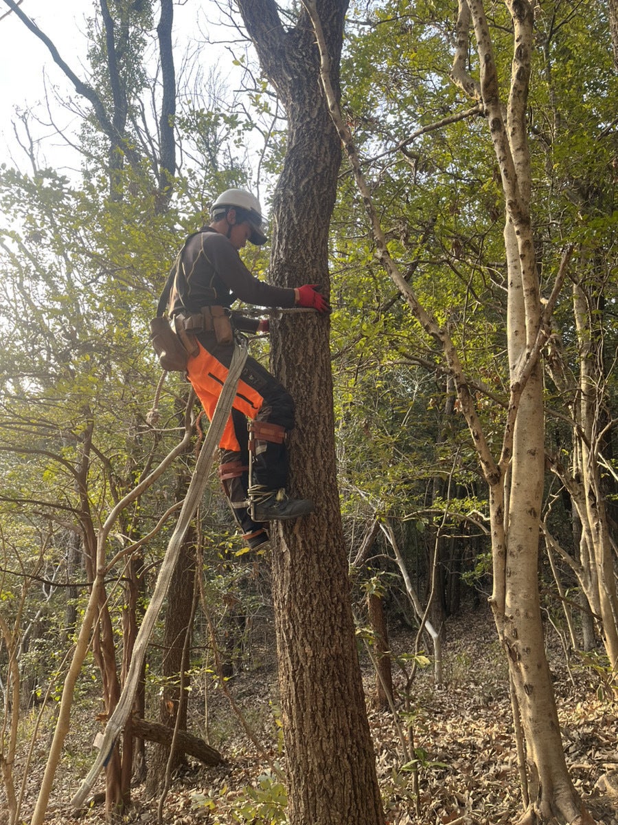 山の上にはまだまだ木があるので、集材作業の準備として、まずは索張りと言われるメインワイヤーを張りました!