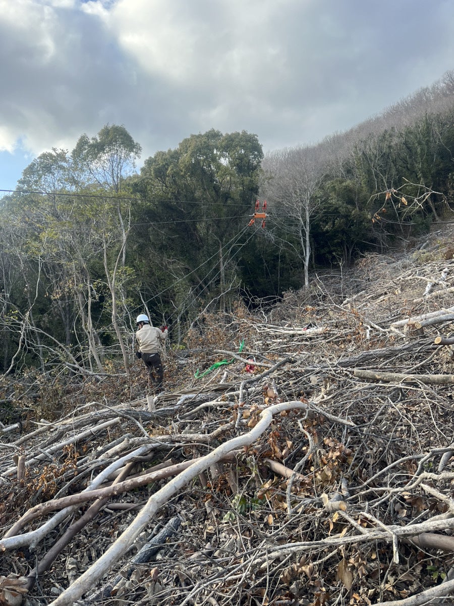 山の上にはまだまだ木があるのでメインワイヤーの設置場所を変更し、残りの集材に取り掛かっています!(^^)!