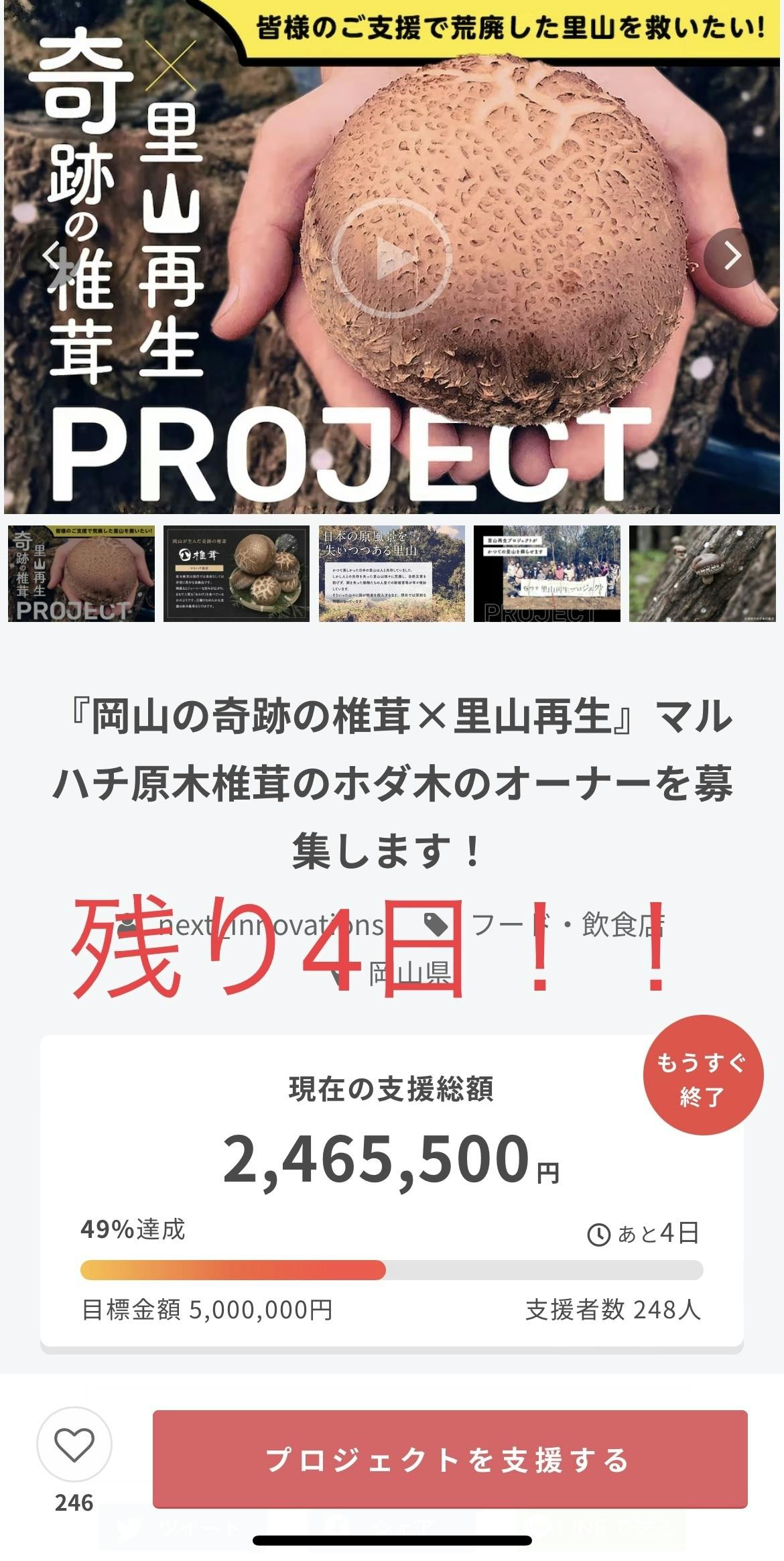 「奇跡の椎茸」×「里山再生」プロジェクトのクラウドファンディングにとって、最後の週末となりました。