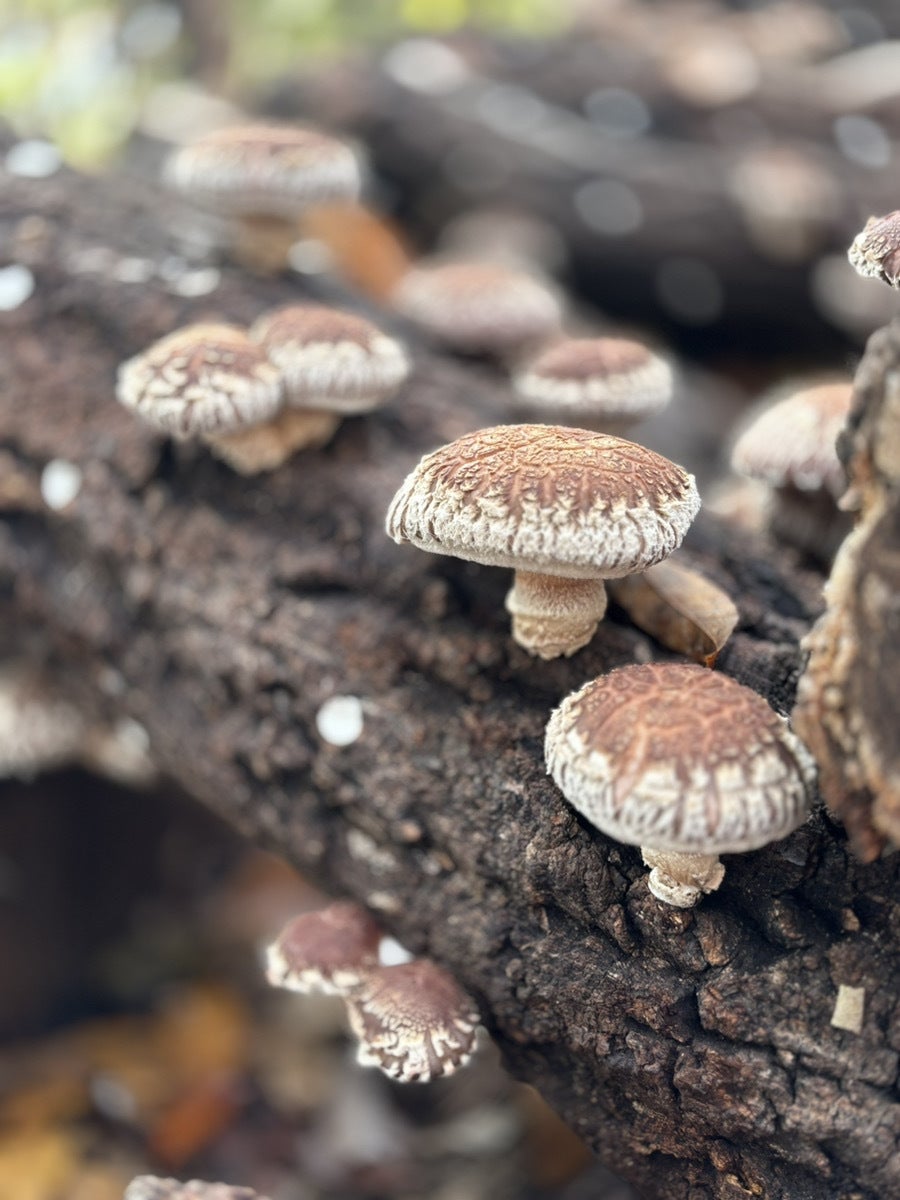 皆さまがオーナーになっていただいた原木から、椎茸が元気ににょきにょきと生えてきております!