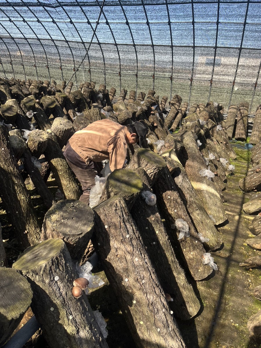 本日は、朝から春子(春に採れる椎茸)の収穫を行いました!収穫の様子先週の雨の影響で気温も上がり、沢山出ていたので1日中収穫しましたが終わりませんでした。でも、サイズも良いものが沢山収穫できたので頑張った甲斐がありました(^^♪収穫は中腰での作業のため腰痛との戦いです。明日も1日かかりそうなので、こまめに休憩を挟みながら頑張ります!ミニジャンボちなみに、写真のミニジャンボも採れたのでついつい並べて写真を撮ってしましました!(^^)!これで「ミニ」ですから。。。( ゚Д゚)クラウドファンディングも残り約2週間となりましたが、今後も随時活動報告を行ってまいりますので、何卒よろしくお願い致しますm(__)m