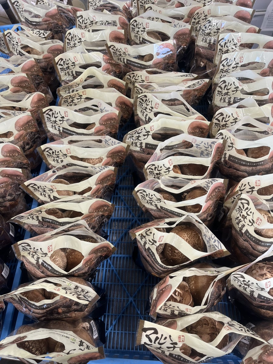※乾燥時間などに誤記があったため修正致しました。本日は、収穫した椎茸のその後の様子をお届け致します(^^)/まず、サイズや形によって、生椎茸、乾燥、パウダー用などに仕分けします!弊社ではスーパーや飲食店、道の駅などにも出荷しています。生椎茸用生椎茸は綺麗に袋に梱包されて出荷されます。トップ画は弊社が取引して頂いているマルナカ様に出荷する時のものになります!一人でも多くの方を笑顔にできればと願いを込めて♪乾燥用などに仕分け中こちらは乾燥用に仕分けをしているものなりますが、すごい量になります。。。弊社が行っている乾燥方法は「特別」です。そのため乾燥機は※約24~30時間は回さなくてはならないので、一杯にして回さないと間に合わないです( ゚Д゚)しかし、これにより弊社の乾燥椎茸は「お戻し10分」という驚きの時間を実現しています。乾燥された椎茸乾燥及びパウダー用に天日干し天日干しすることにより、椎茸に含まれるビタミンDは約7倍まで上昇します。これらを全て手作業で行っているため時間が掛かりますが、その分愛情を込めて育てていますし、出荷する時はやはり嬉しいものがあります(^^♪