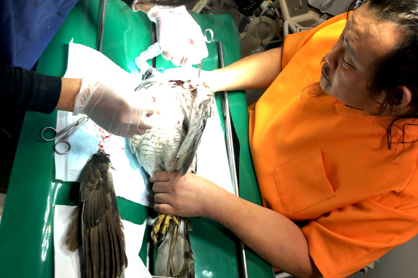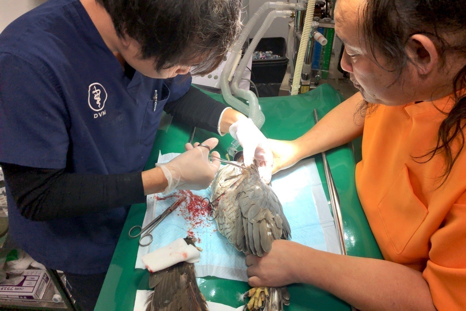 怪我をしたオオタカの手術