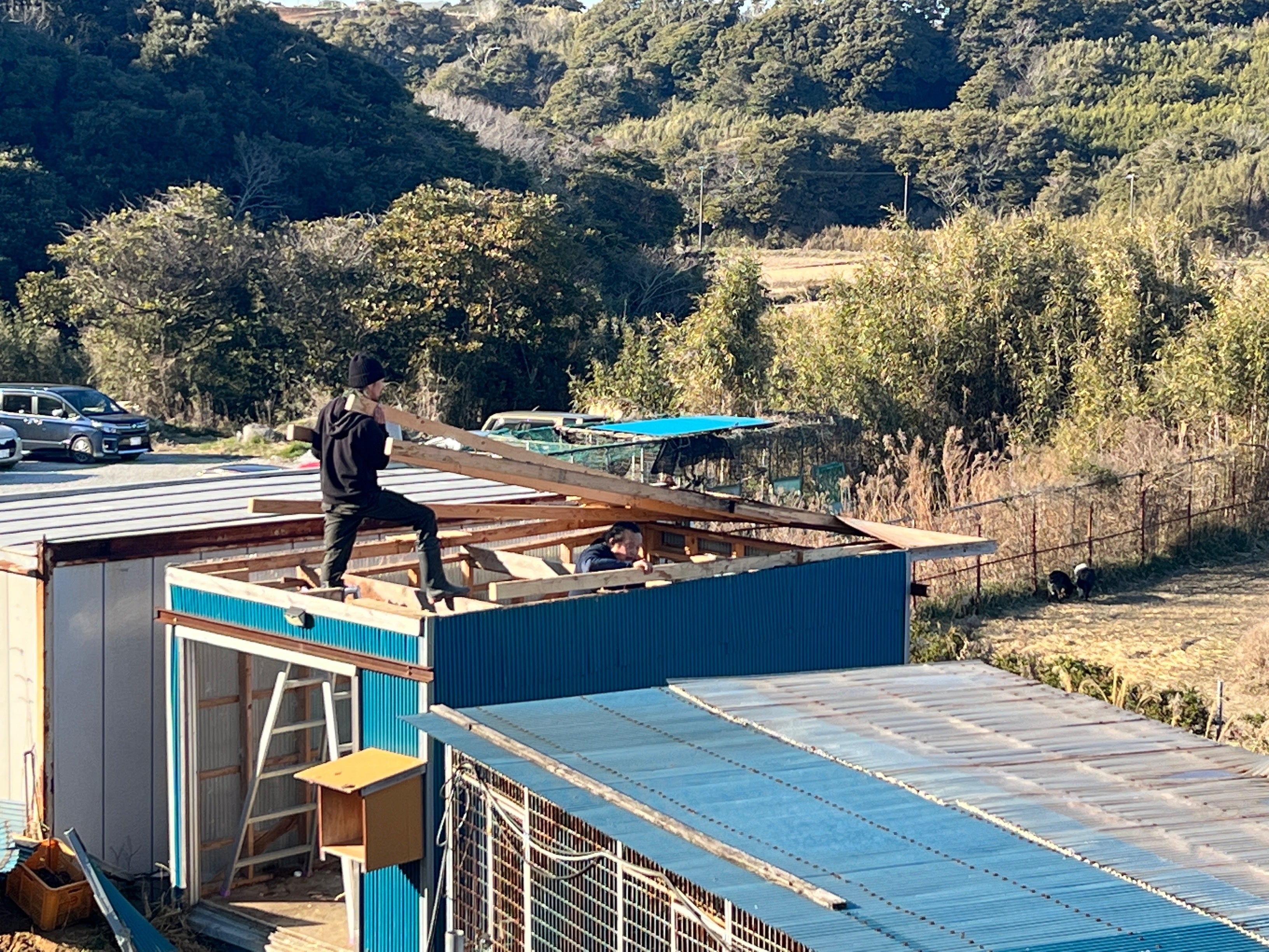 この度、敷地内にある既存の小屋を私達で解体し基礎を作り、そこにエサ用大型冷凍庫を設置する工事がスタートしました。