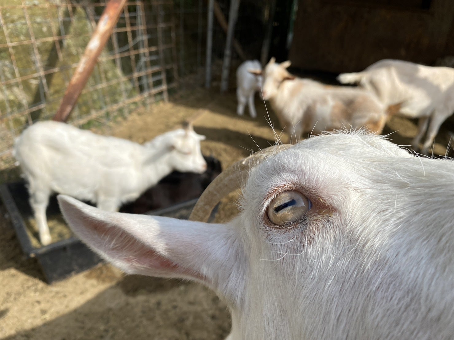 とても人に慣れており、子ヤギたちを撮影しようとカメラをむけた時に「私を撮って~」、「私を写してよ~」と言わんばかりにカメラへ顔を近づけてきました。