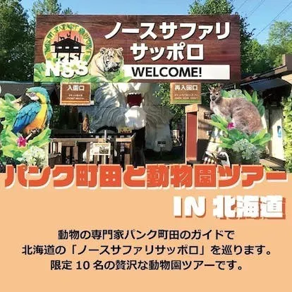 北海道のノースサファリサッポロにて、動物の専門家であるパンク町田のガイドにより、動物の解説を聞きながら園内を巡る限定10名の贅沢な動物園ツアー。