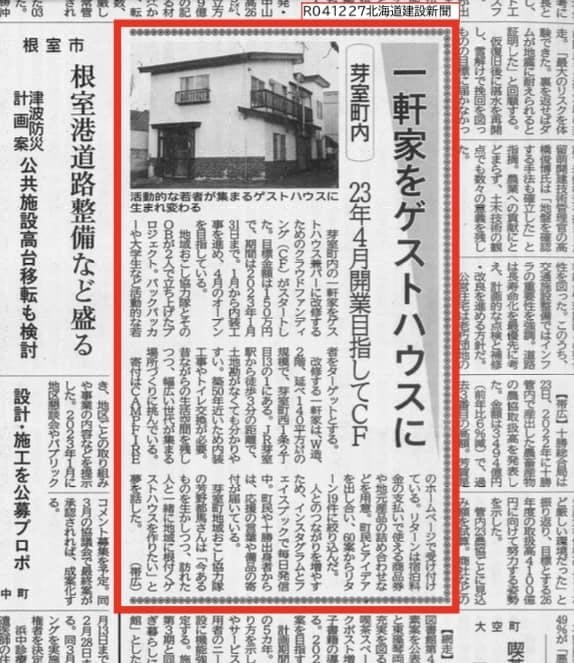 掲載から日数が経ってしまったのですが、12月27日の北海道建設新聞さんに掲載していただきました。