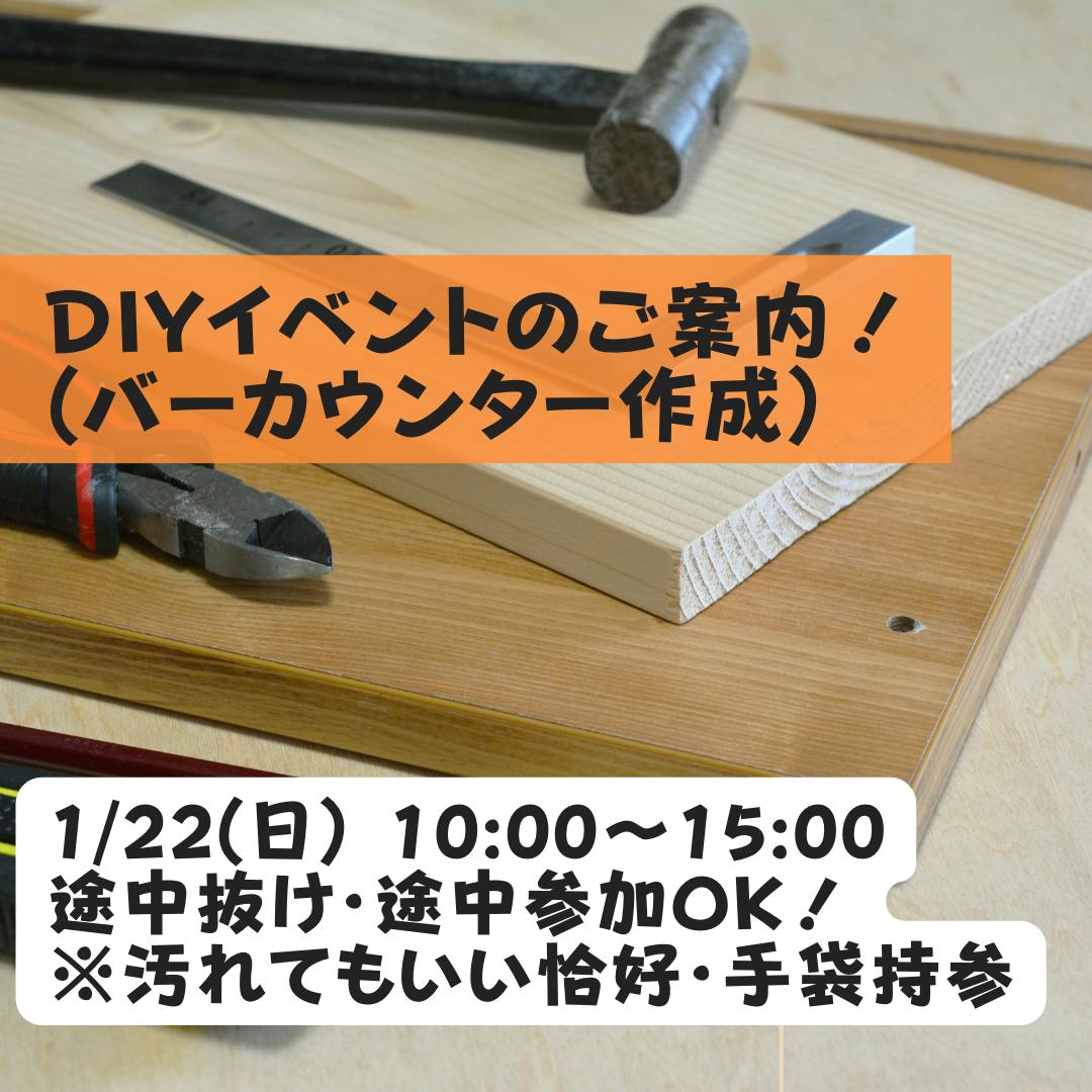 さてさて、以前からお伝えさせていただいている「DIYイベント」ですが、今週末22日(日)の10時~15時で第2弾を実施します。