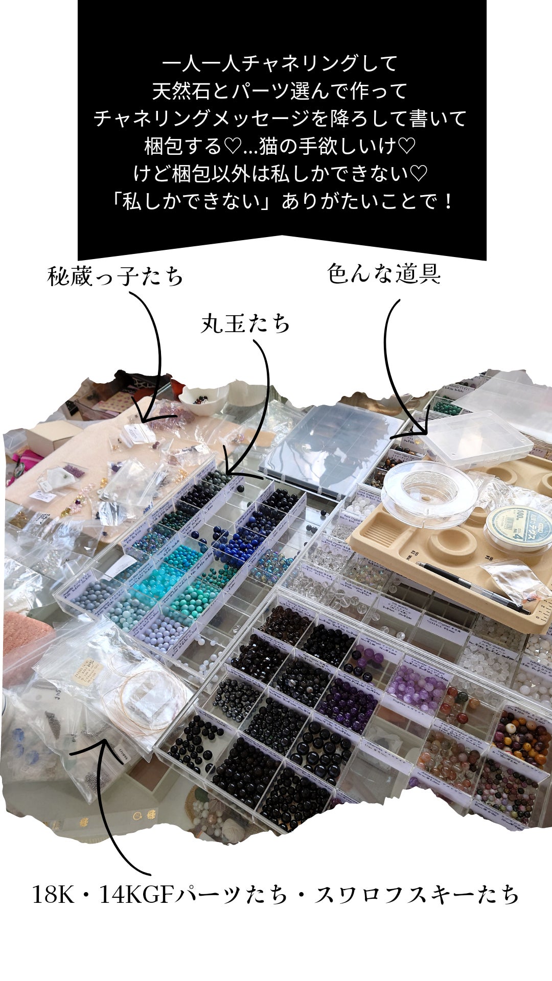 2023/03/05 15:07お久しぶりの投稿です!現在、サロン営業もしながら少しずつですがリターンをお作りしてます。お一人お一人をチャネリングして天然石を選びデザインを考えて出来上がった作品からのチャネリングメッセージを書いて梱包してお届けする…なので、一気に作り上げられませんが頑張ってるので天然石アクセサリーをご依頼のみなさま!お待ちください♡あっきー頑張ってます! もっと見る