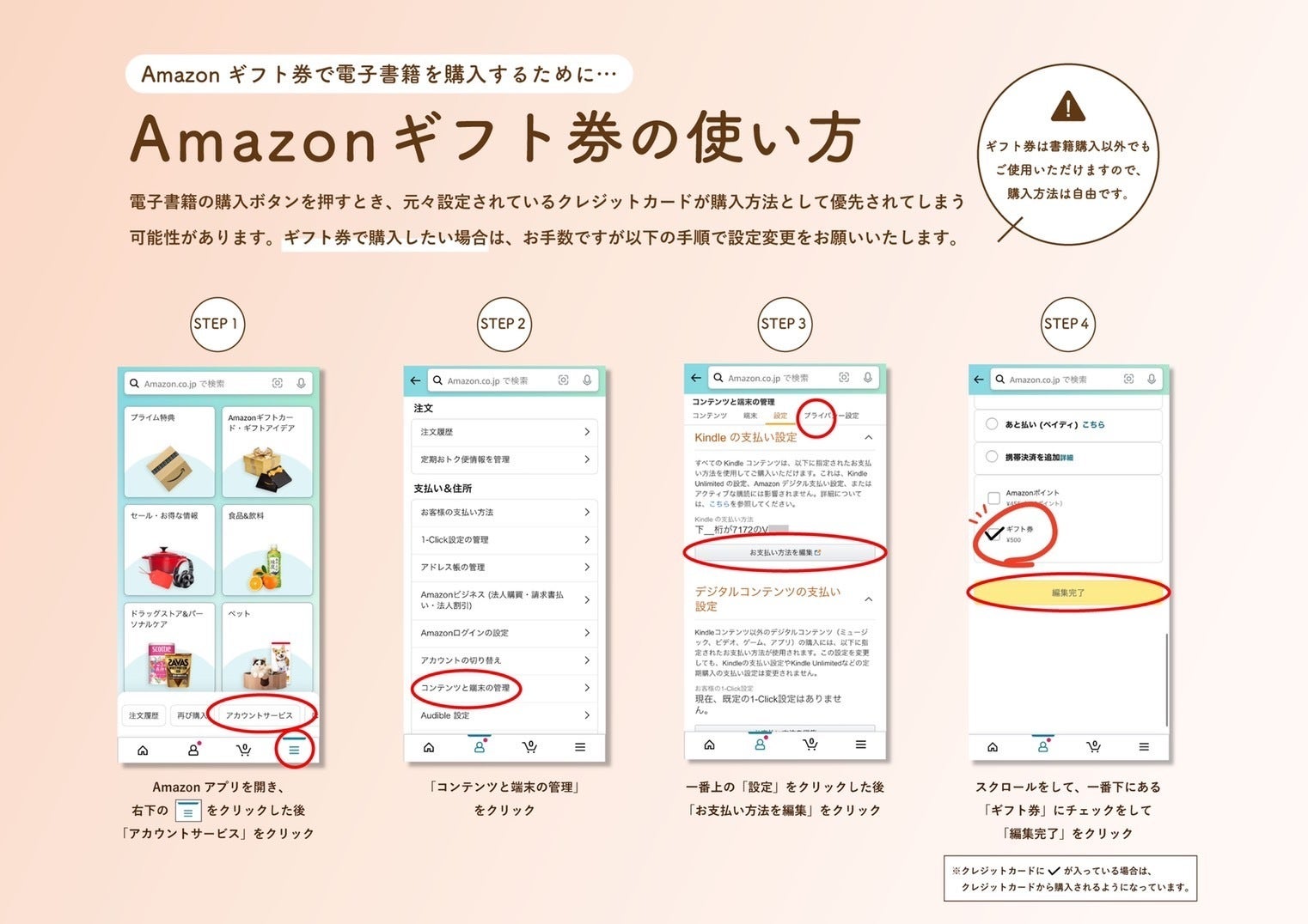 2023/06/06 07:37おはようございます♡昨日は本の出版に伴い「ダウンロード出来ない」や「ギフト券どこ〜!」などご連絡をいくつか頂きました。ご迷惑をおかけして申し訳ありません…私の理解不足でご迷惑おかけしました…私からお送りしたメールはギフト券の受け取りになります①URLをクリックしてトキツカゼ出版さんのギフト券受け取りページに入ってください。②Amazonアカウントに適用します(これであなたのAmazonアカウントの中に紐づけられる)③Amazonのホームページを開く「やまさき あき」で本を検索④本をカートに入れる⑤支払い方法を「ギフト券」に選択する⑥決済これで本が買えます♡よろしくお願いします♡写真の「Amazonギフト券の使い方」を参照いただけたらと思います。お手数お掛けして申し訳ありませんがどうぞよろしくお願いします♡ もっと見る