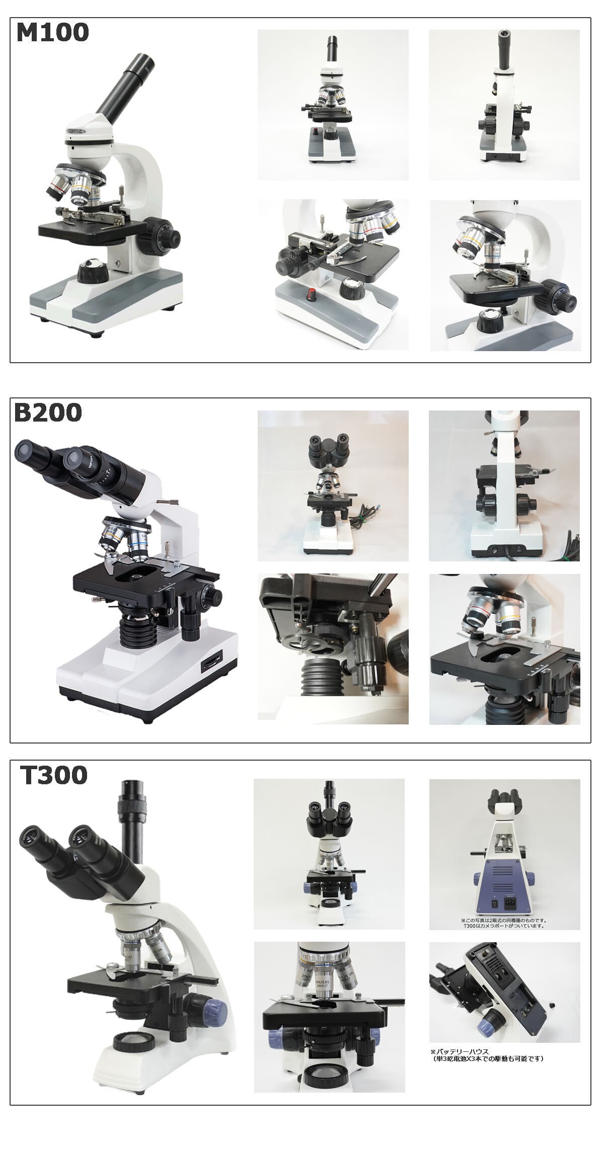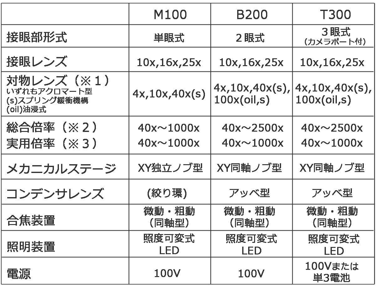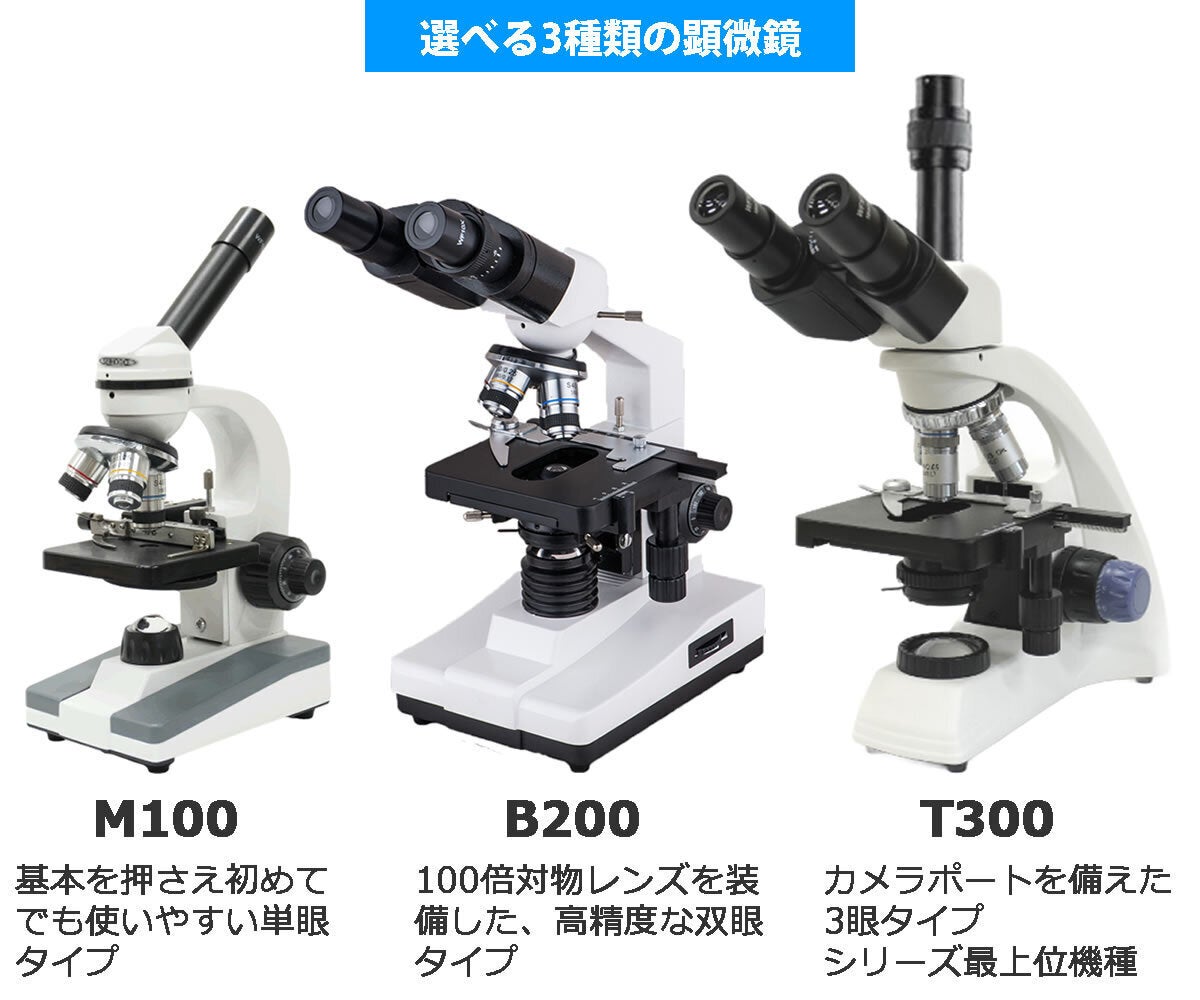 顕微鏡は次の3種類を準備しました。ニーズに合った機種をお選びいただけます。