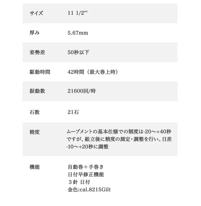 日差-20~+40秒の機械精度を、日差-10~+20秒と通常の2倍の改善をしています。