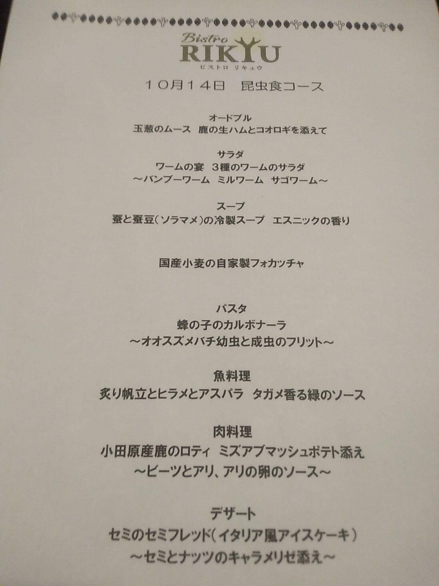 先週開催された昆虫食フルコース。
