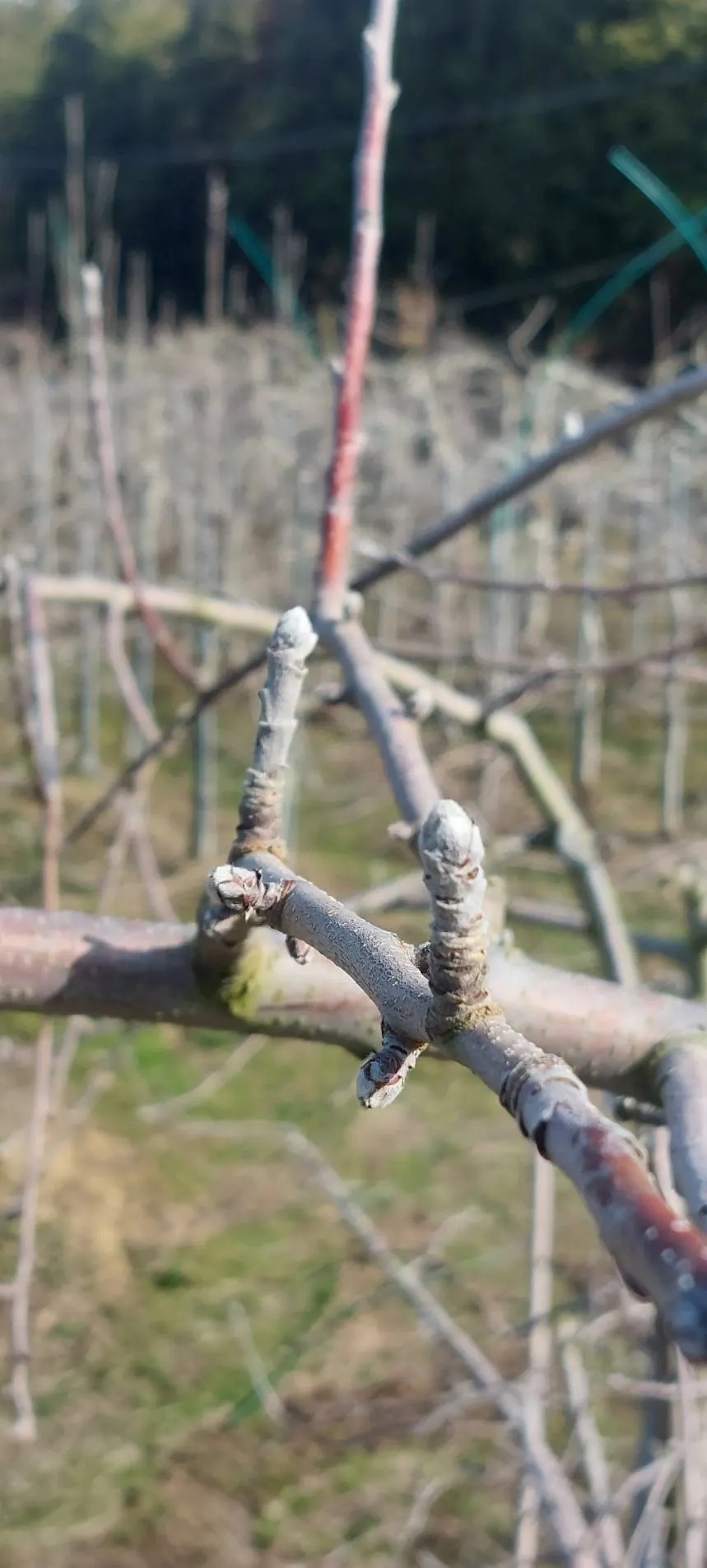 剪定作業もだいぶ終わりが見えてきてます。暖かくなり、りんごの花の芽も見え始めてます♪