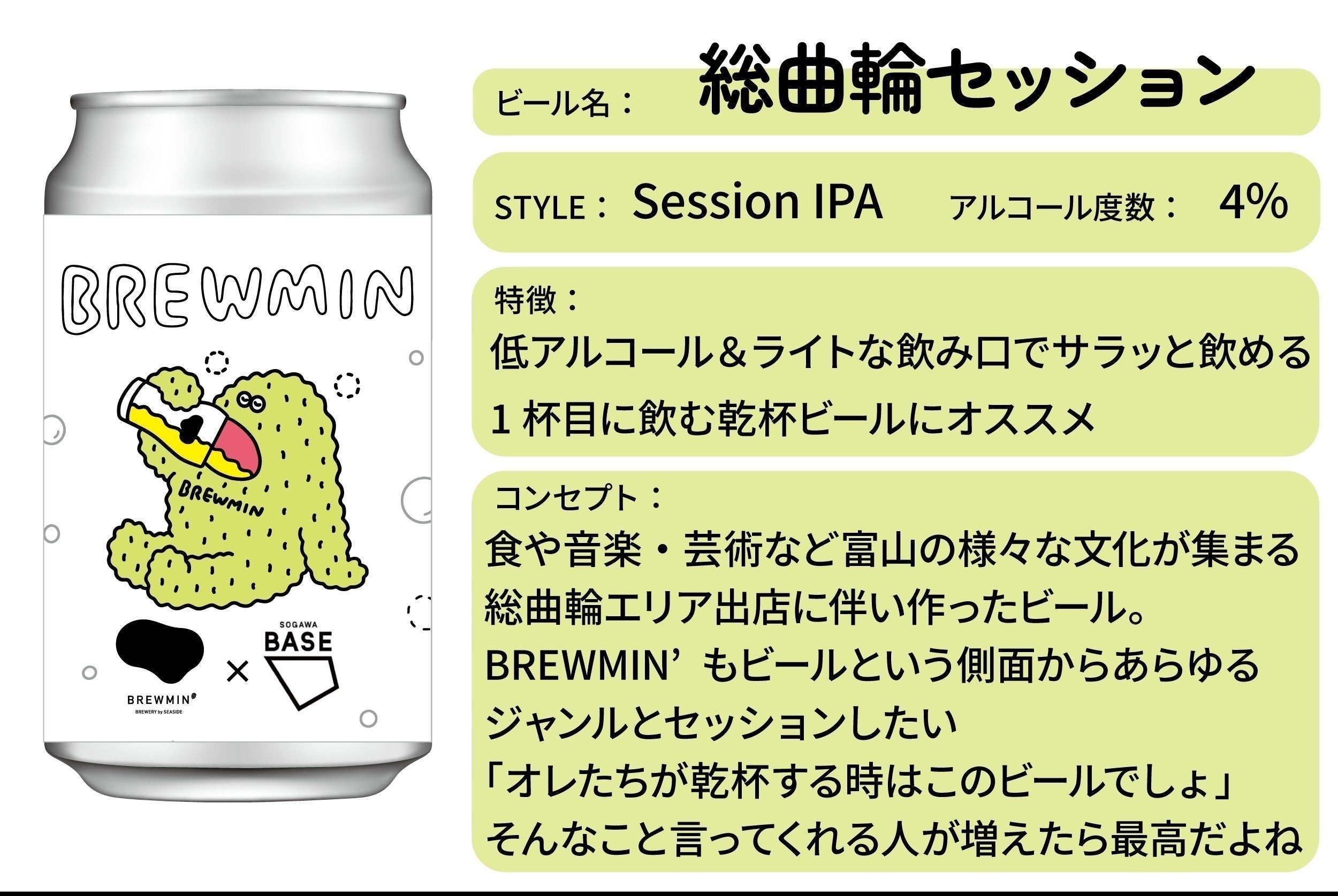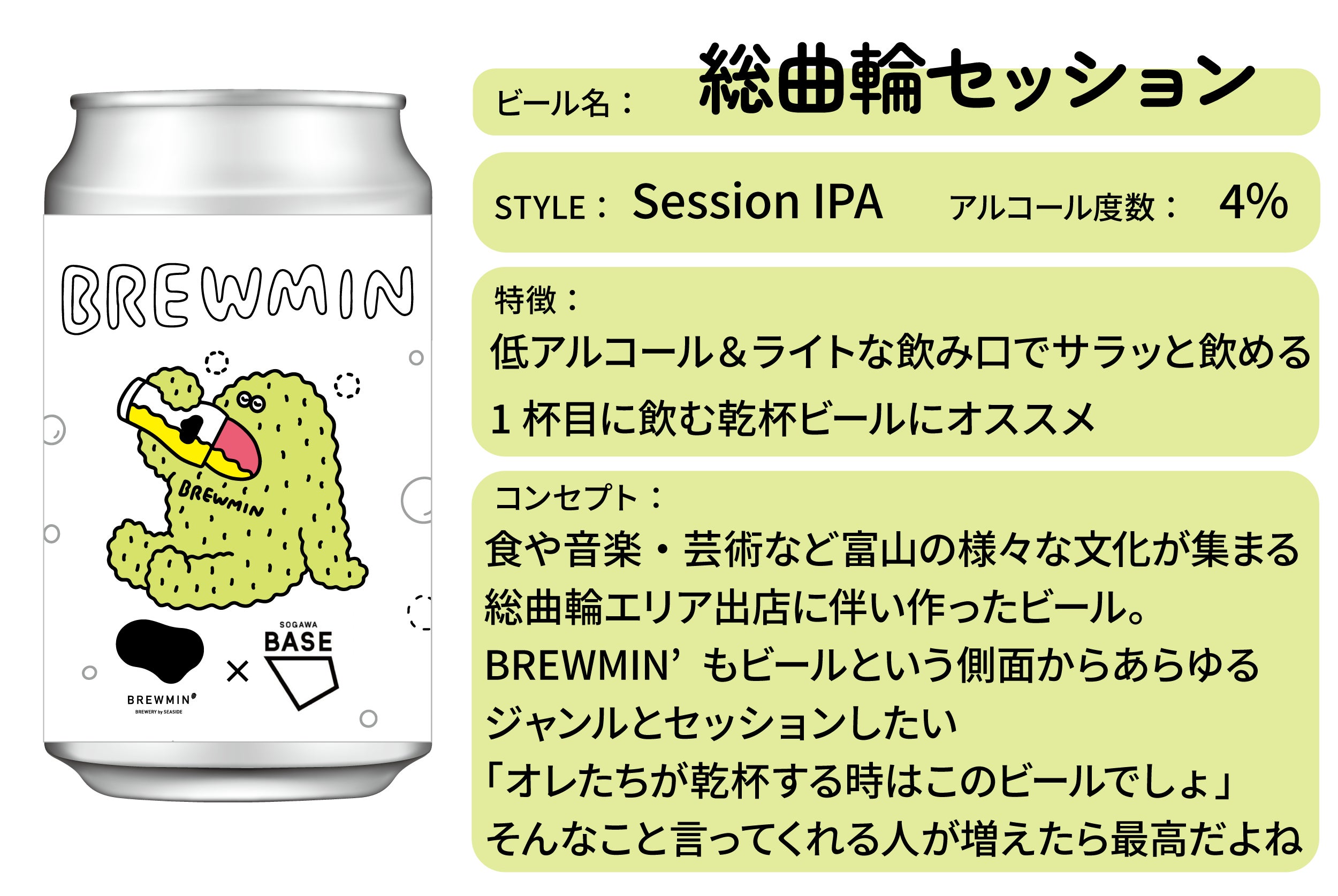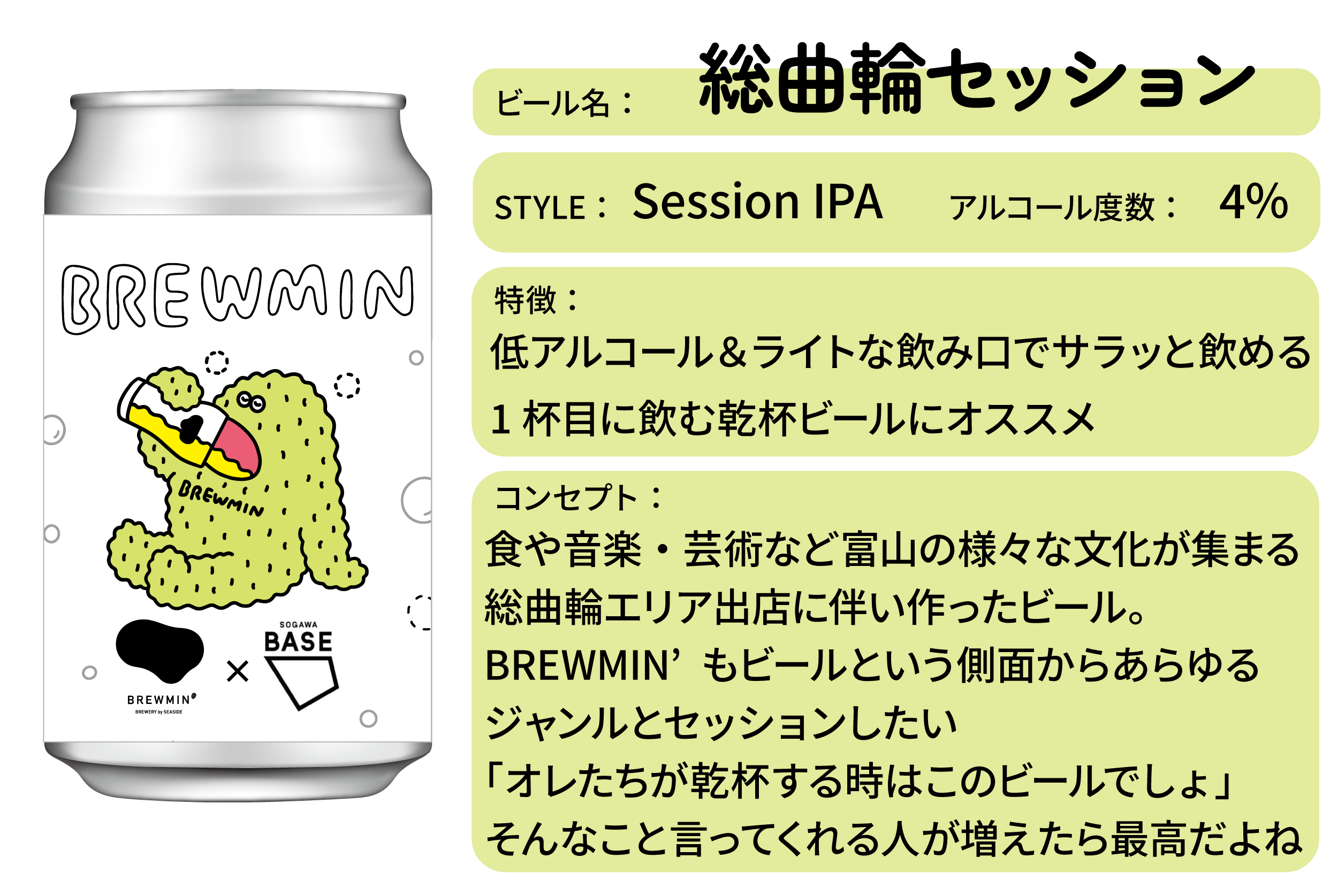香川県のブルワリー「せとうち」にBREWMIN'のレシピを持ち込んで仕込ませてもらったビールを缶に充填したものです。
