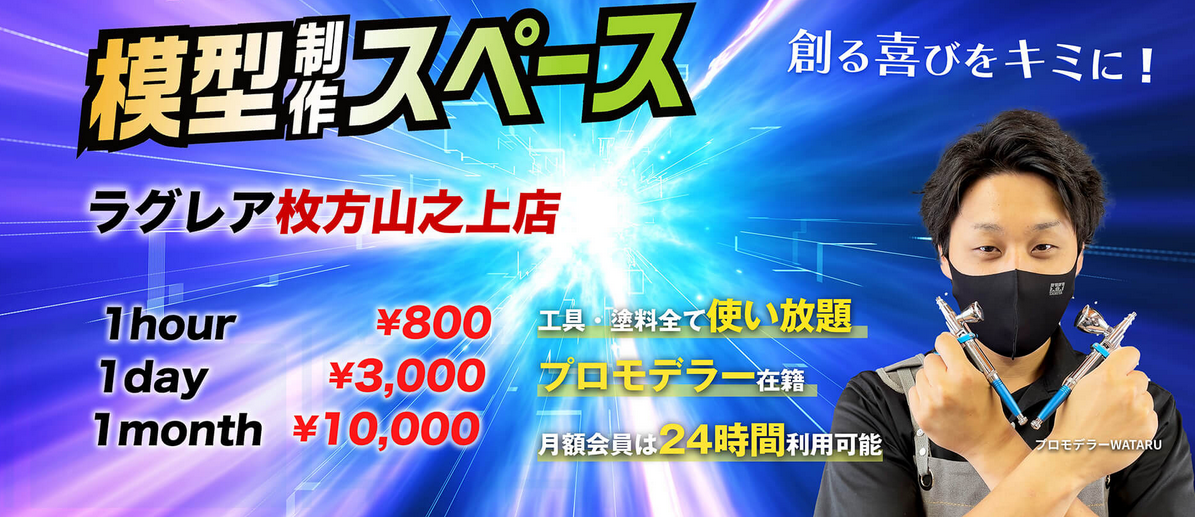 弊社では、“創る喜びをキミに!"をコンセプトに、模型制作スペースを3店舗運営しています。