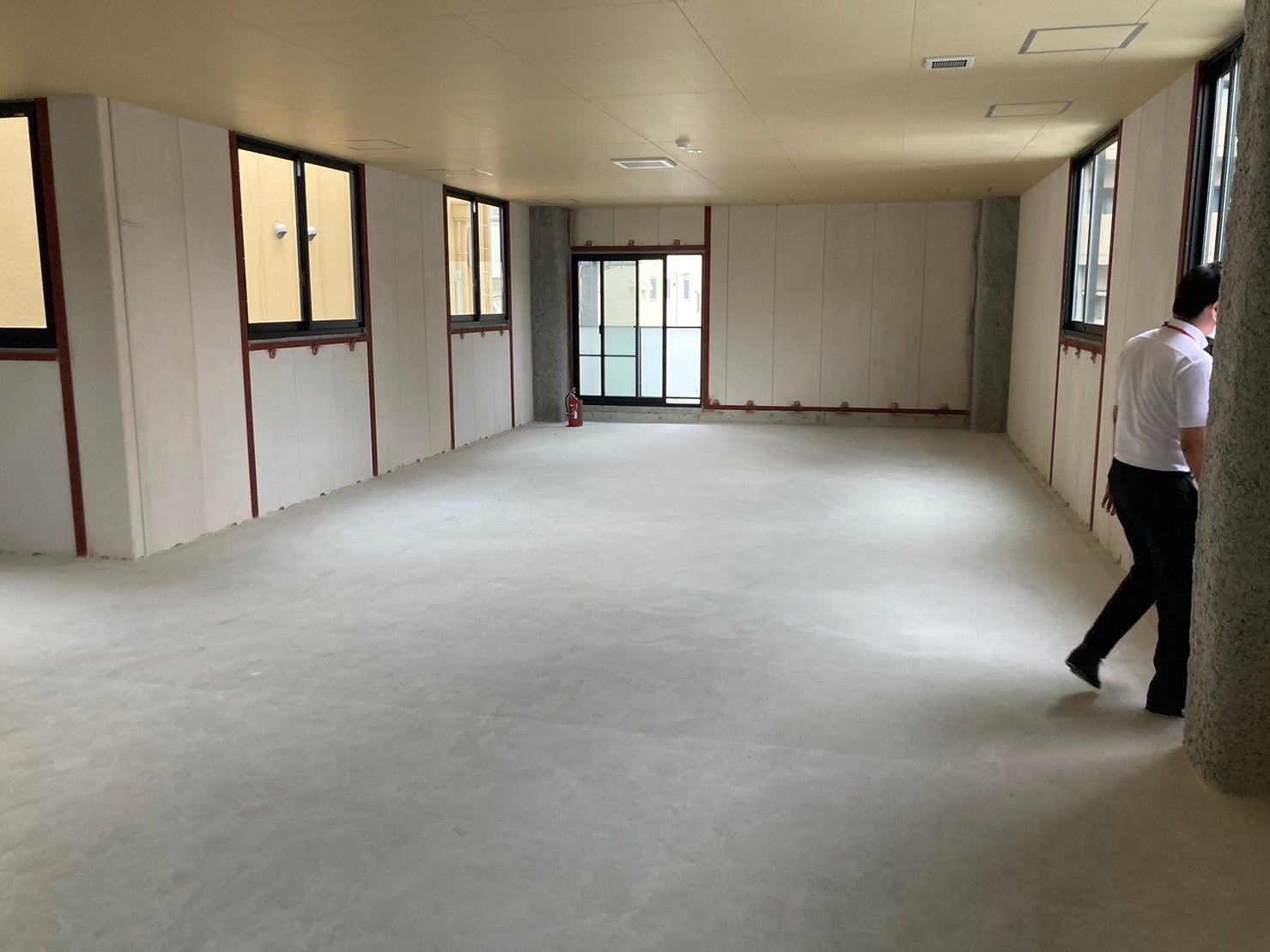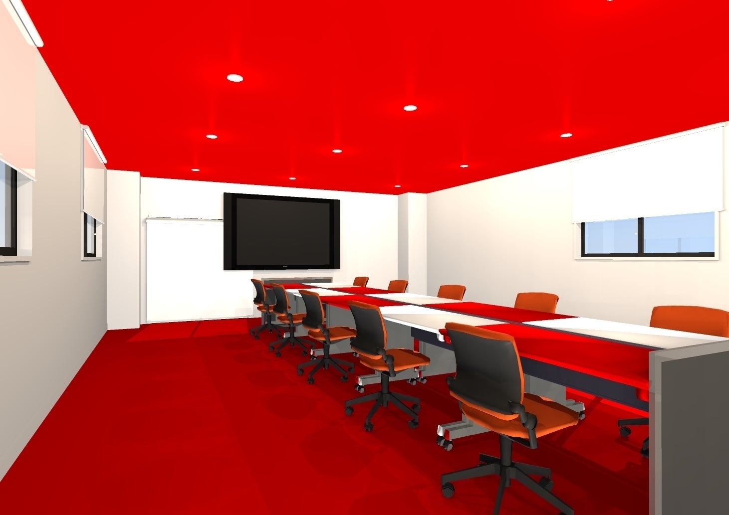 ラグジュアリーゾーンと命名した奥ばった部屋は白と赤を基調とし、競技性・非日常性を強くしました。可動間仕切りを設置し、空間を分けられるようにする予定です。