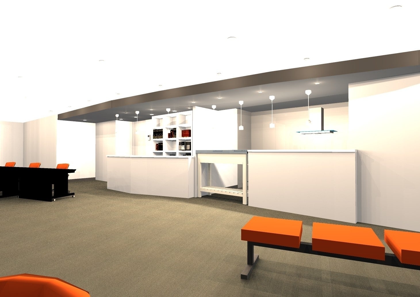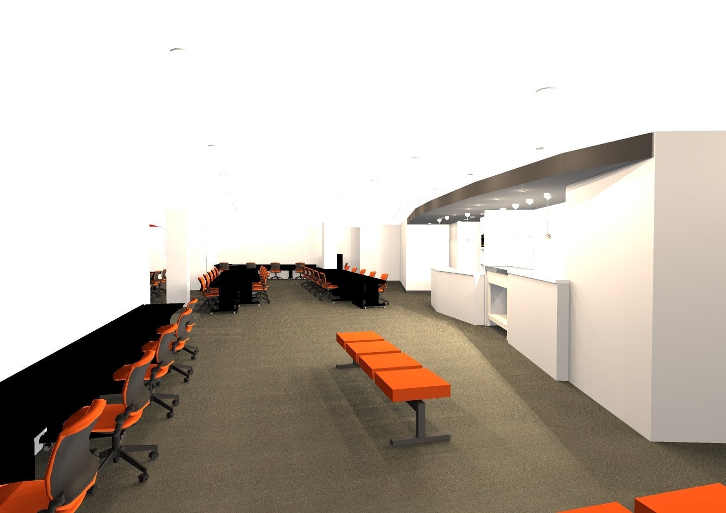 30台分のスペースは、カジュアルにe-sports(PCゲーム)を楽しんでいただくことをイメージしています。床はグレー、壁は白にし、ライトで明るい雰囲気になる予定です。