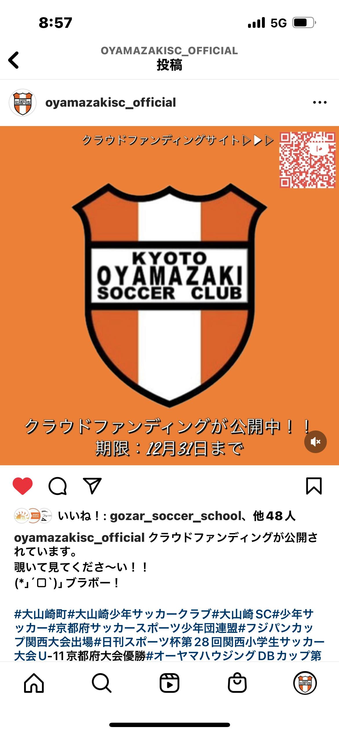 大山崎少年サッカークラブのプロジェクトページをご覧いただき、ありがとうございます。