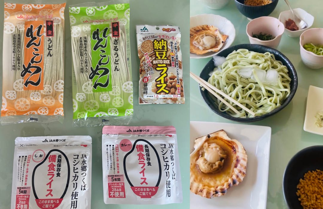 「JA水郷つくば」さんご協力のリターン品として、れんこん麺、微食ライス、納豆ライスの試食会をしました。実行委員の井上さんのご自宅で小川さんと、わたくし天野が集まり、麺を茹でてもらって試食!初めてのれんこん麺は聞いていた通り腰があって、ツルッと喉越しが良くとっても美味しい麺でした。細い麺は「ざるうどん」、太目の麺は「うどん」と名前がついてます。れんこんを麺で味わうことが出来て、生産地の土浦の人気の商品です。かすみがうらマラソンの景品にもいつも選ばれていて、多くの方が実際に味わいファンも多いそうです。