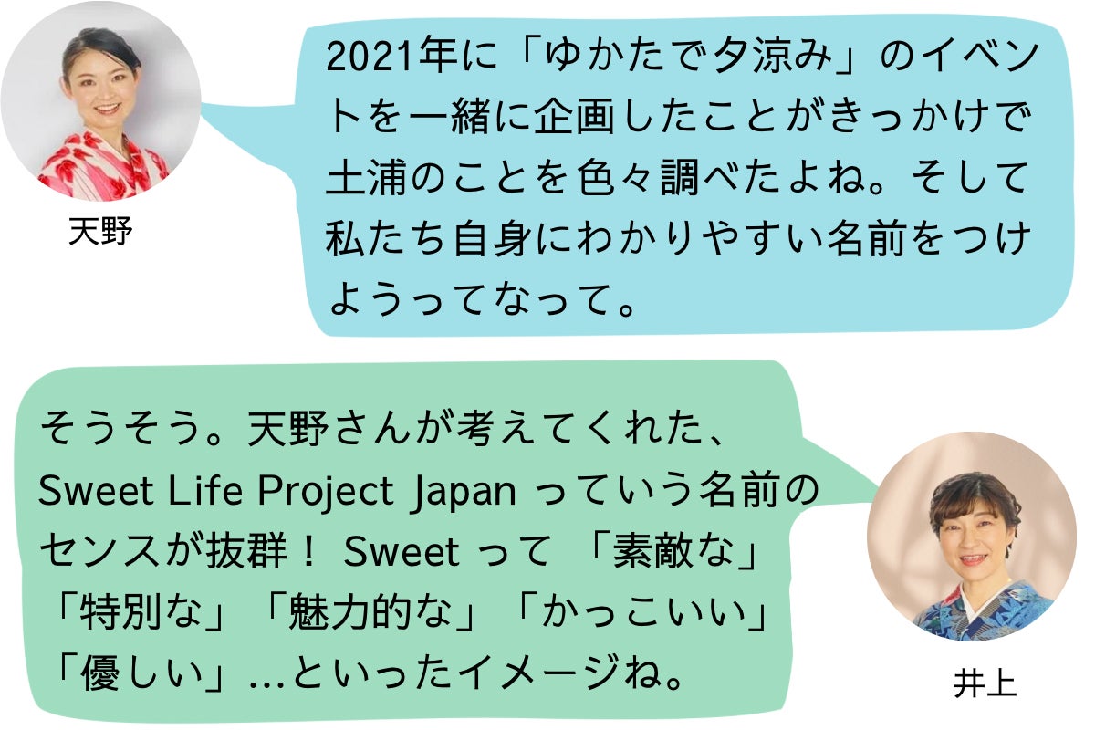 茨城県土浦市を拠点に活動しております Sweet Life Project Japan ディレクターの天野久美子と、コーディネーターの井上千香子です。