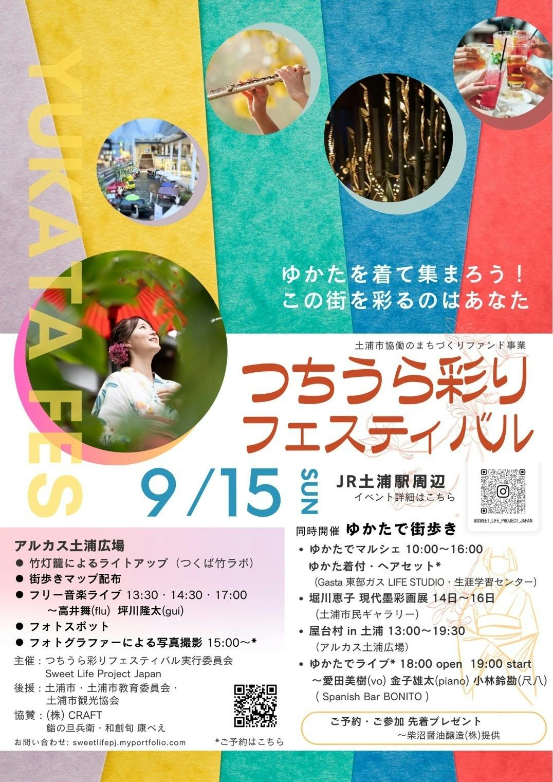 2024/08/08 12:532024「ゆかたで街歩き」は9月15日(日)みなさんこんにちは お久しぶりです!昨年みなさんにご支援いただきましたクラウドファンディング、反響をジワジワといただいております。ゆかたの… と話すと「見たよ!」「参加したかったの!」「クラファンすごいね!」と。私たちの力だけでは到底及ばないはずのところからお声をいただいたり「実はクラファン経験者なんだよね」←同志ですね!握手!!ってことも。そして今年は、、、なんと土浦市から認定をいただいて土浦協働のまちづくりファンド事業となったのです。市民活動課の方とご相談しながら昨年のうちから企画を練って参りました。「自分の街は自分で彩る」をテーマにつちうら彩りフェスティバルとしてブラッシュアップ。土浦の駅前を手作りの竹灯籠でライトアップします。この街を彩るのはあなた手探りなのは相変わらず、ようやく詳細が決まりまして、ポスターも土浦市からOKいただきました!少しずつお知らせしていきます。https://sweetlifepj.myportfolio.com/yukata【ご協賛】ありがとうございます!株式会社CRAFT 様鮨の旦兵衛 様和創旬 康べえ 様【ご予約・ご参加プレゼント提供】柴沼醤油醸造株式会社 様同日開催の「ゆかたでライブ」もご注目ください!ご予約はこちらhttps://sweetlifepj.stores.jp/ もっと見る