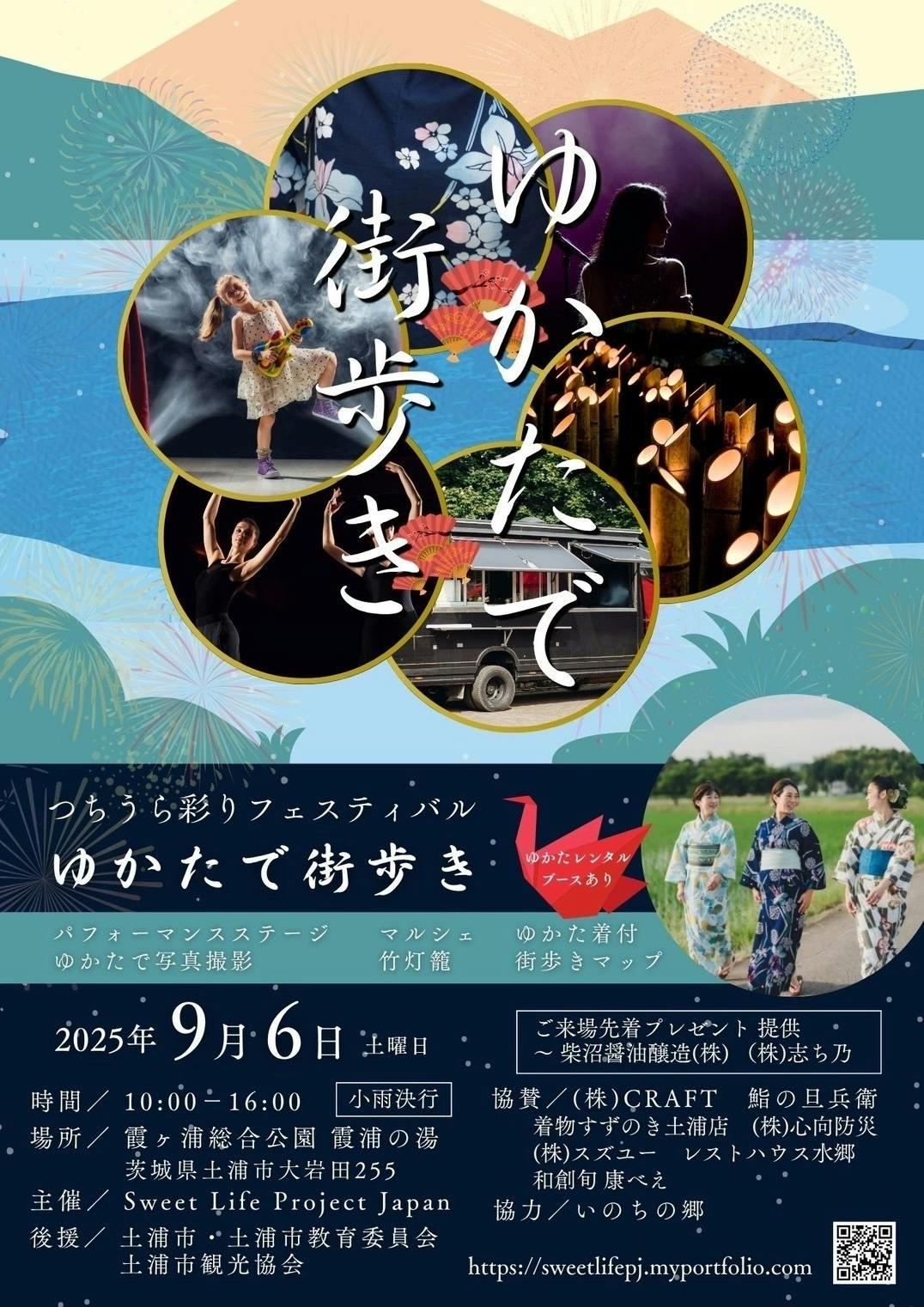 2025/09/04 22:15ご支援いただいた皆さまへ皆様おひさしぶりです!クラウドファンディングでは「ゆかたで街歩き」への温かい応援をいただき、本当にありがとうございました。皆さまのお力添えがあって、この取り組みを続けることができています。そして今年も開催が決定しました!【つちうら彩りフェスティバル】『ゆかたで街歩き』* 2025年9月6日(土) 10:00〜16:00*霞ヶ浦総合公園 霞浦の湯(土浦市)ゆかたを着て街歩きや撮影を楽しんだり、竹灯籠のあかりやマルシェ、ステージパフォーマンスなど、夏の終わりを彩る一日をご用意しています。当日は「ゆかたレンタル・着付けブース」もありますので、初めての方でも安心してご参加いただけます!ぜひ、この機会にご家族やご友人と一緒に遊びにいらしてください。皆さまに再びお会いできるのを、心から楽しみにしています。詳細はポスターをご覧ください。 もっと見る
