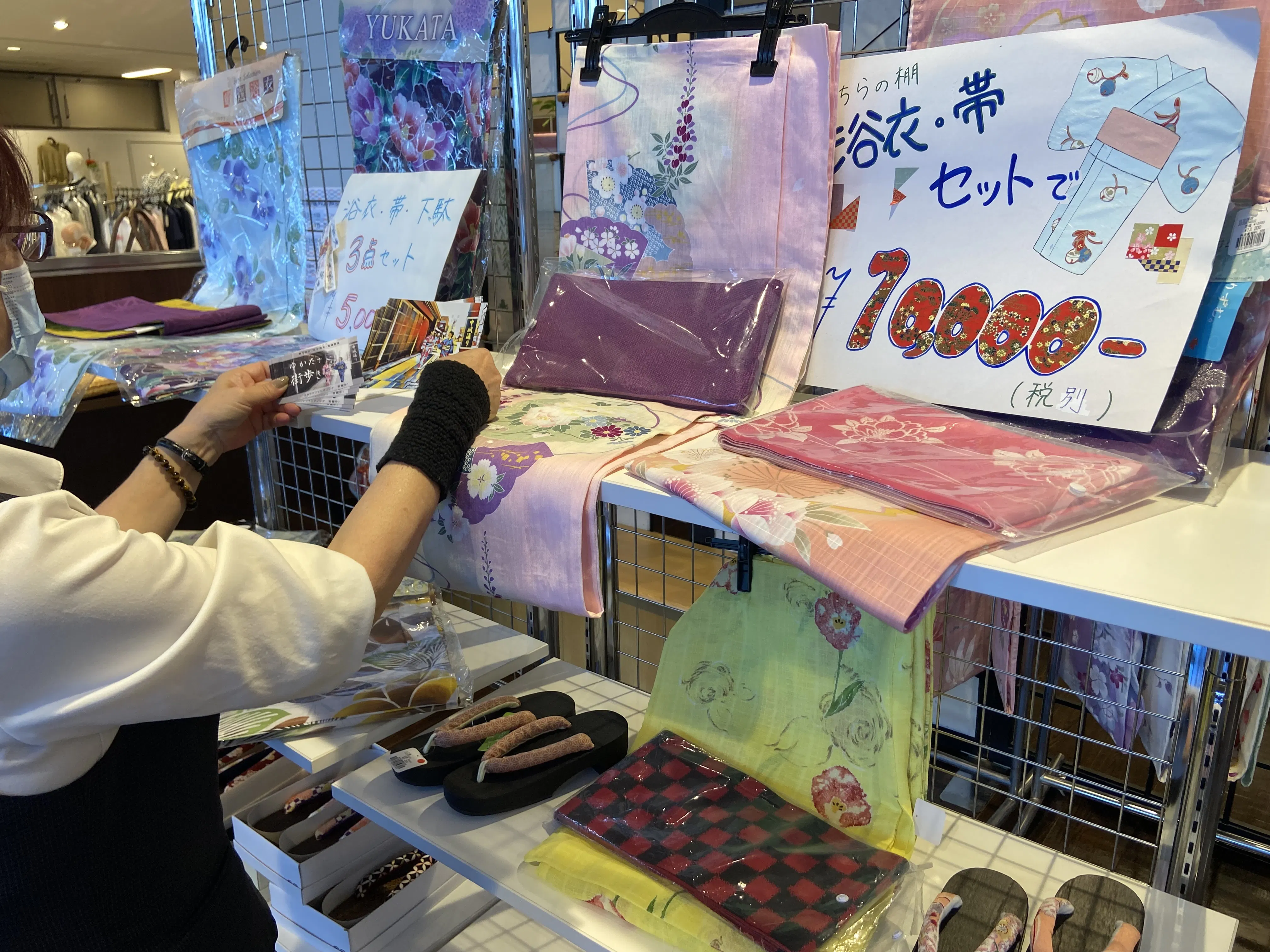 「ゆかたで街歩き」イベントでレンタルゆかたと着付のご協力をしていただくお店です。フライヤーをお届けに行くと、店内にはゆかたコーナーがあり、コーディネートが楽しくなるような様々なゆかたや小物が揃っていました。